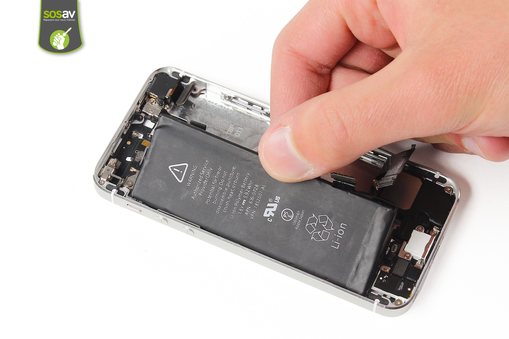 Saisissez ensuite la batterie puis procédez à son retrait.La batterie de l'iPhone 5S est désormais démontée.