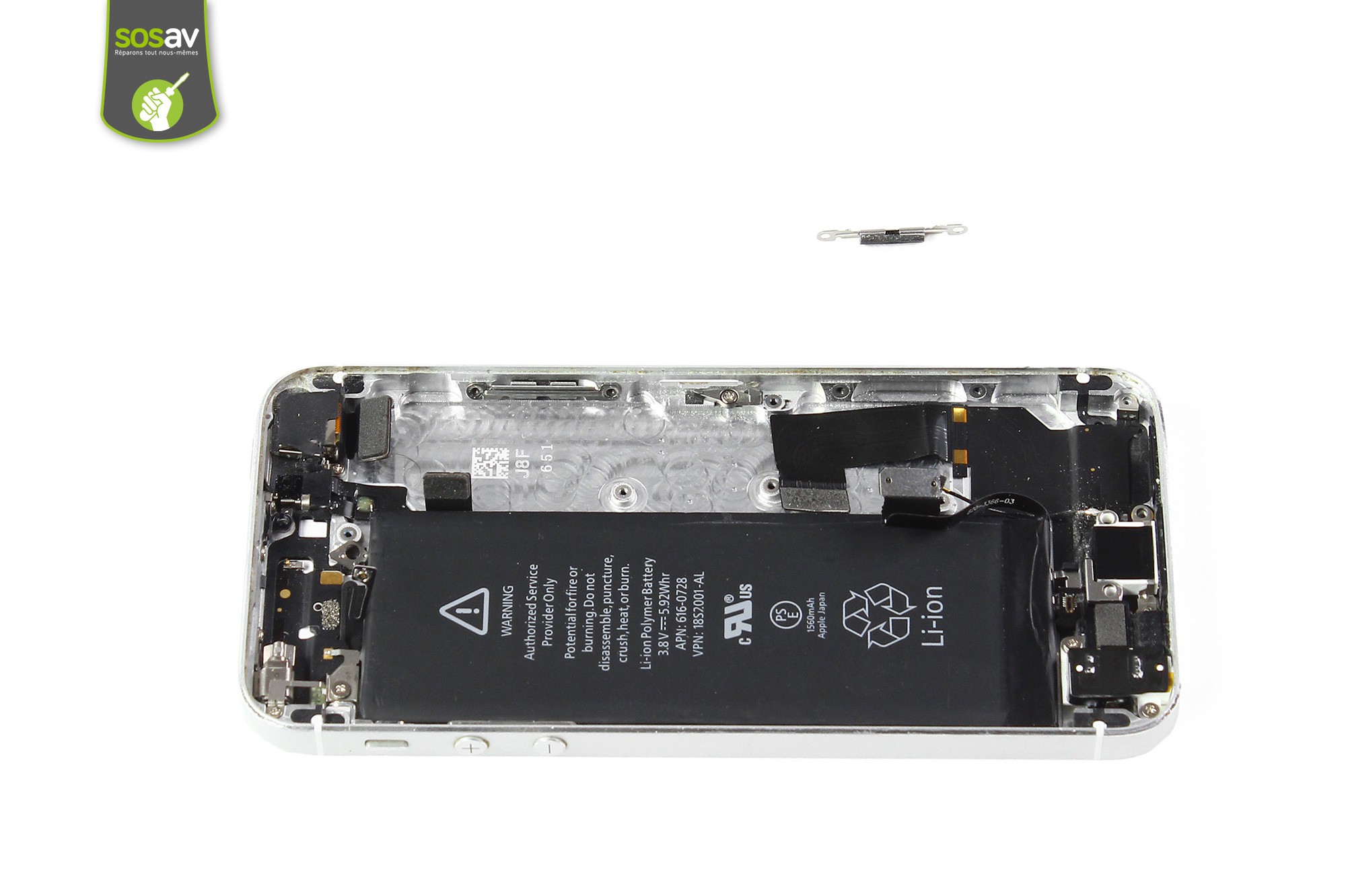 Saisissez ensuite la batterie puis procédez à son retrait.La batterie de l'iPhone 5S est désormais démontée.