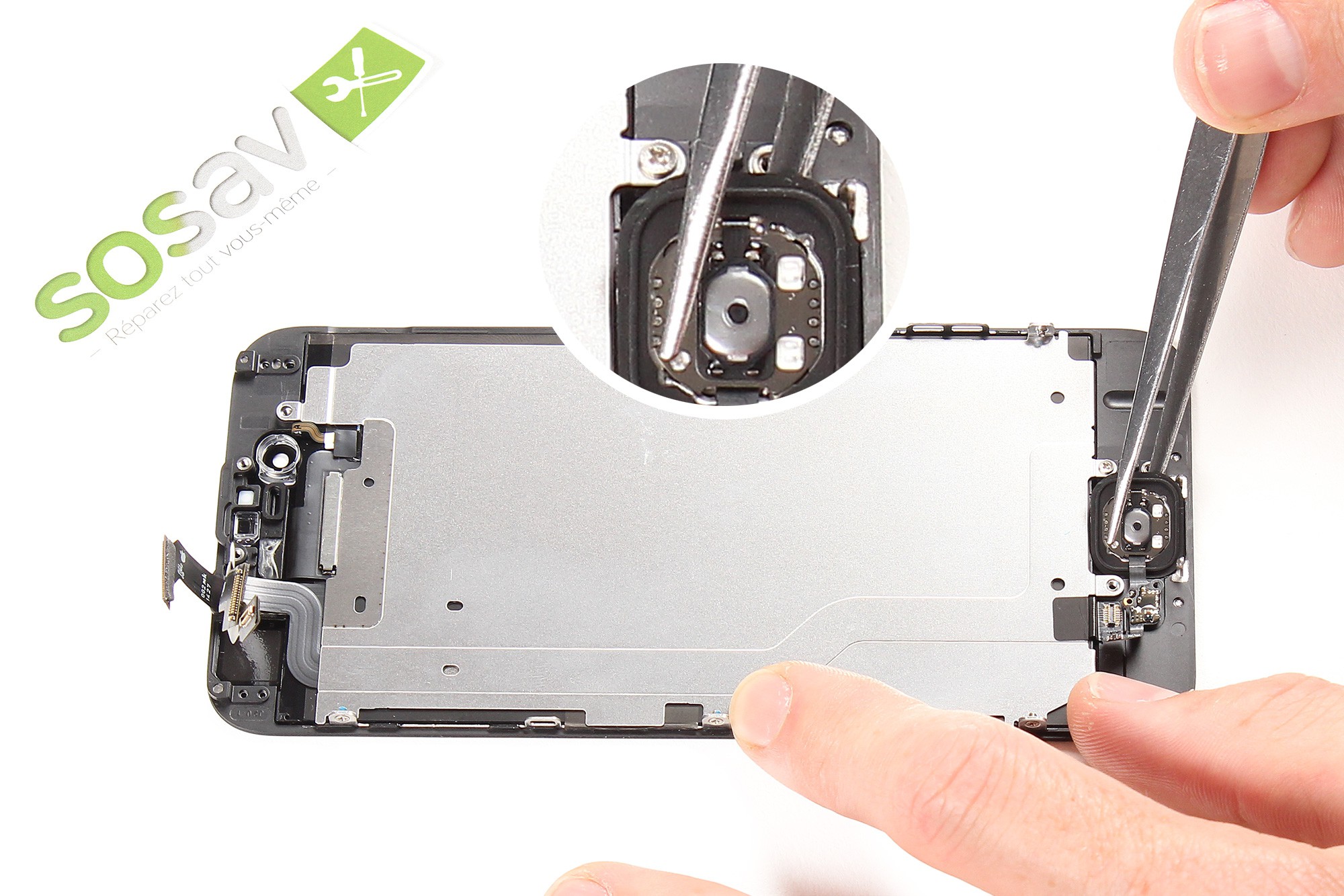 Soyez très minutieux lors de cette opération, la nappe du bouton home étant fragile !