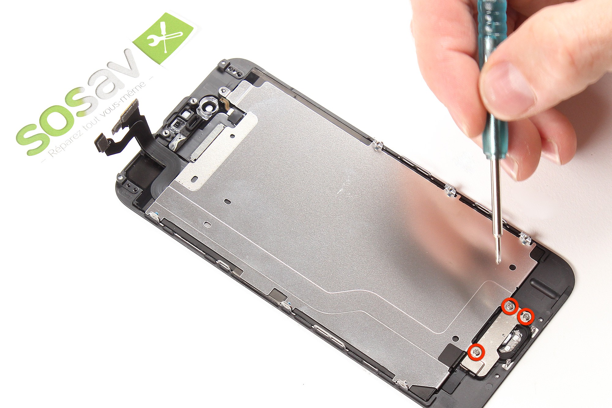 Ces vis sont localisées au niveau du connecteur lightning du téléphone.