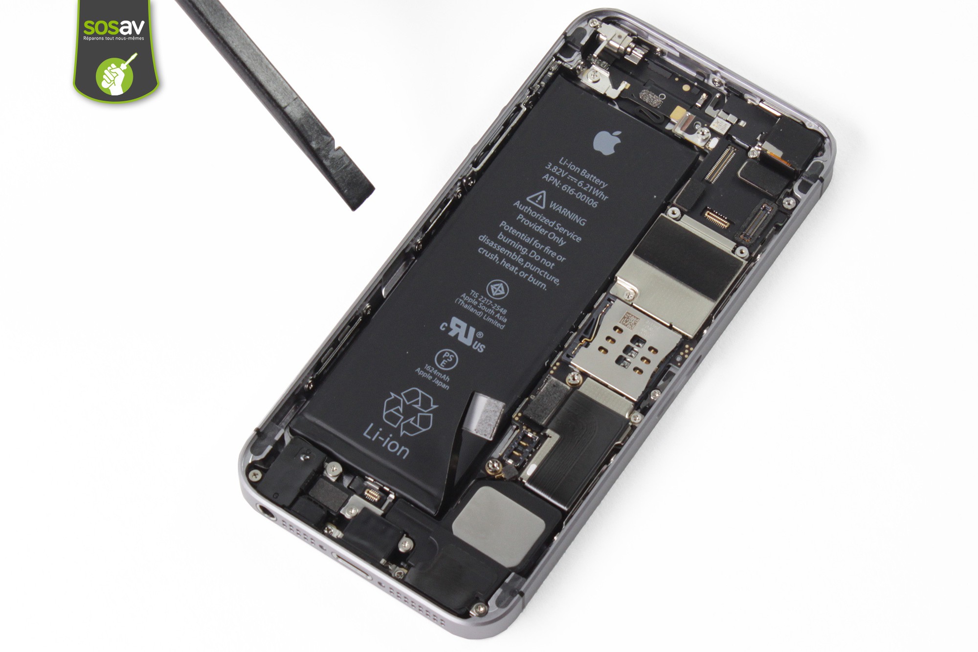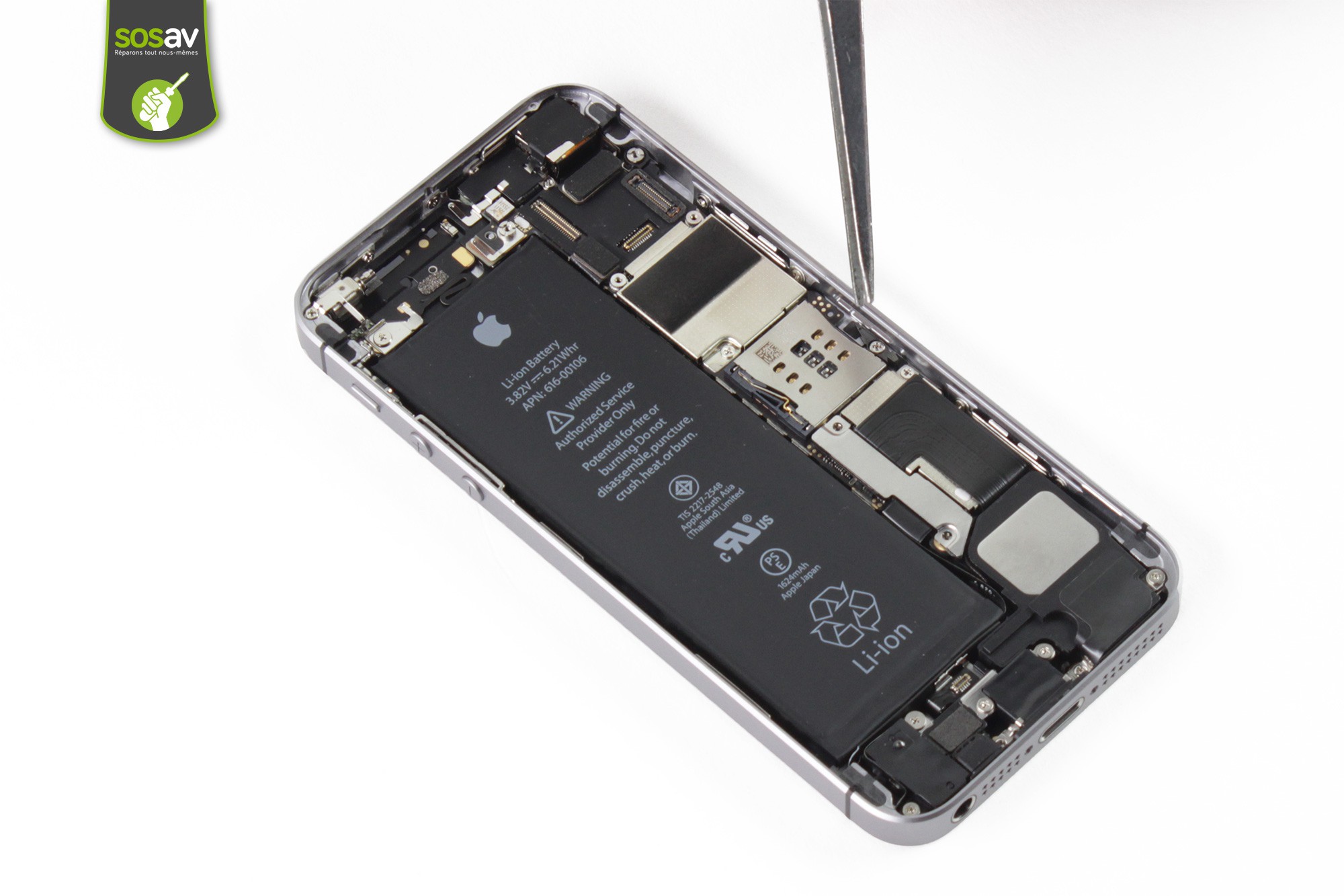 Les techniciens de SOSav vous epxliquent les manoeuvres à réaliser pour changer cette batterie iPhone SE défectueuse en quelques minutes à travers un tuto de réparation illustré et commenté, étape par étape. Vous aurez l'impression d'être un(e) pro de la réparation !