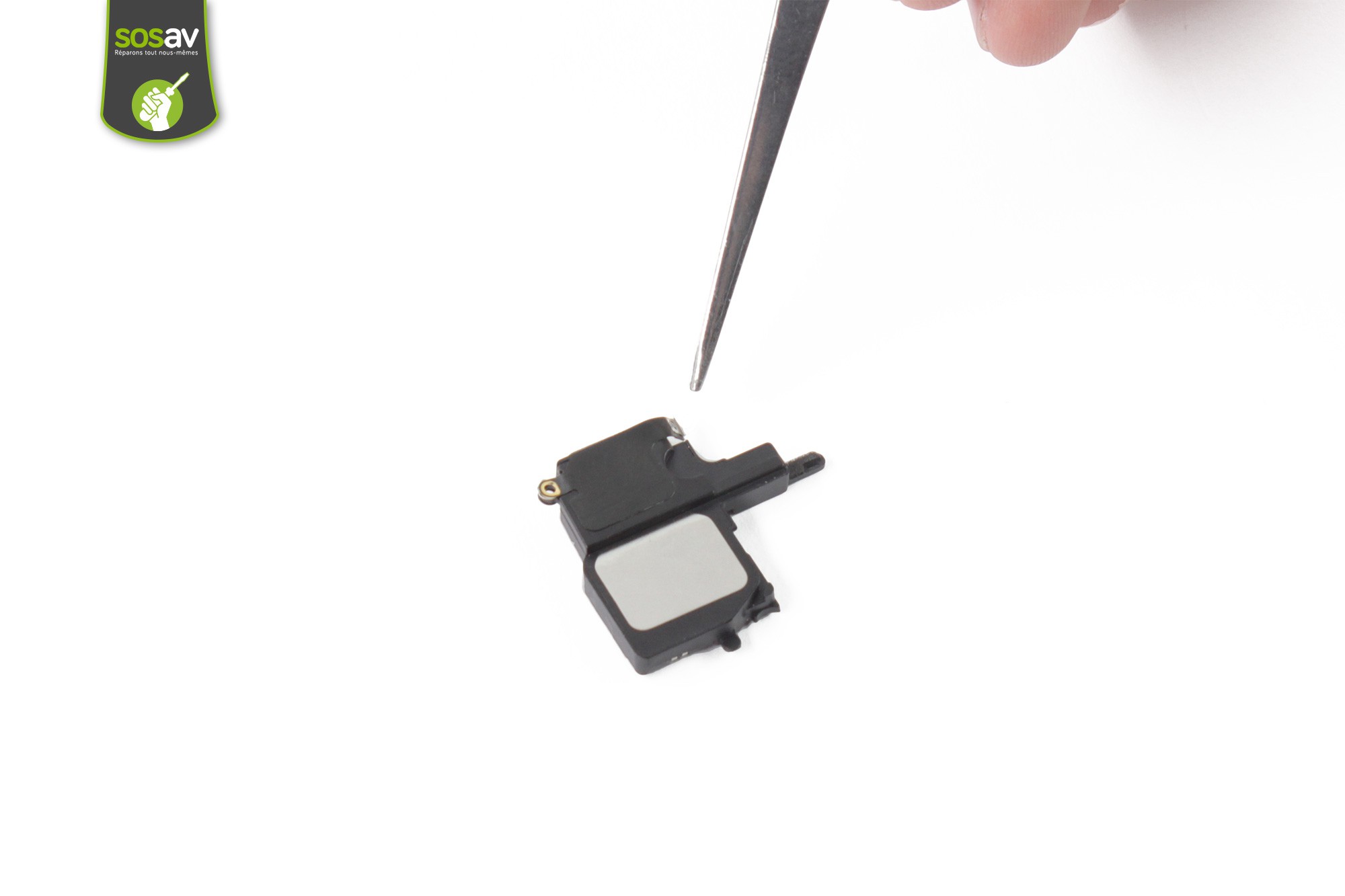 Toujours avec la pince, décollez la nappe présente sur le haut-parleur externe.