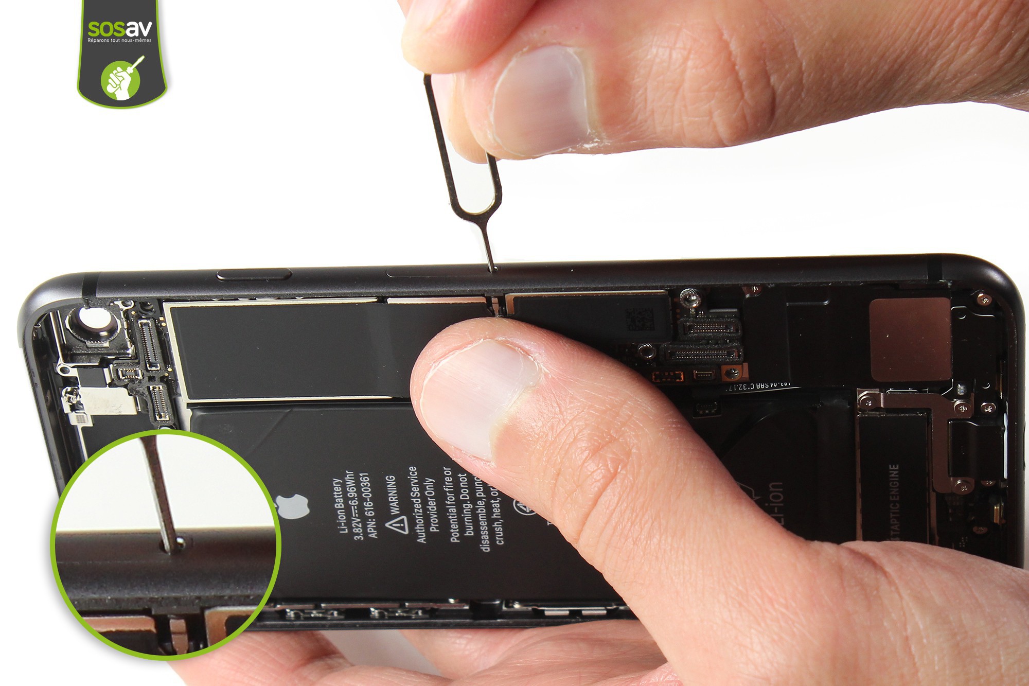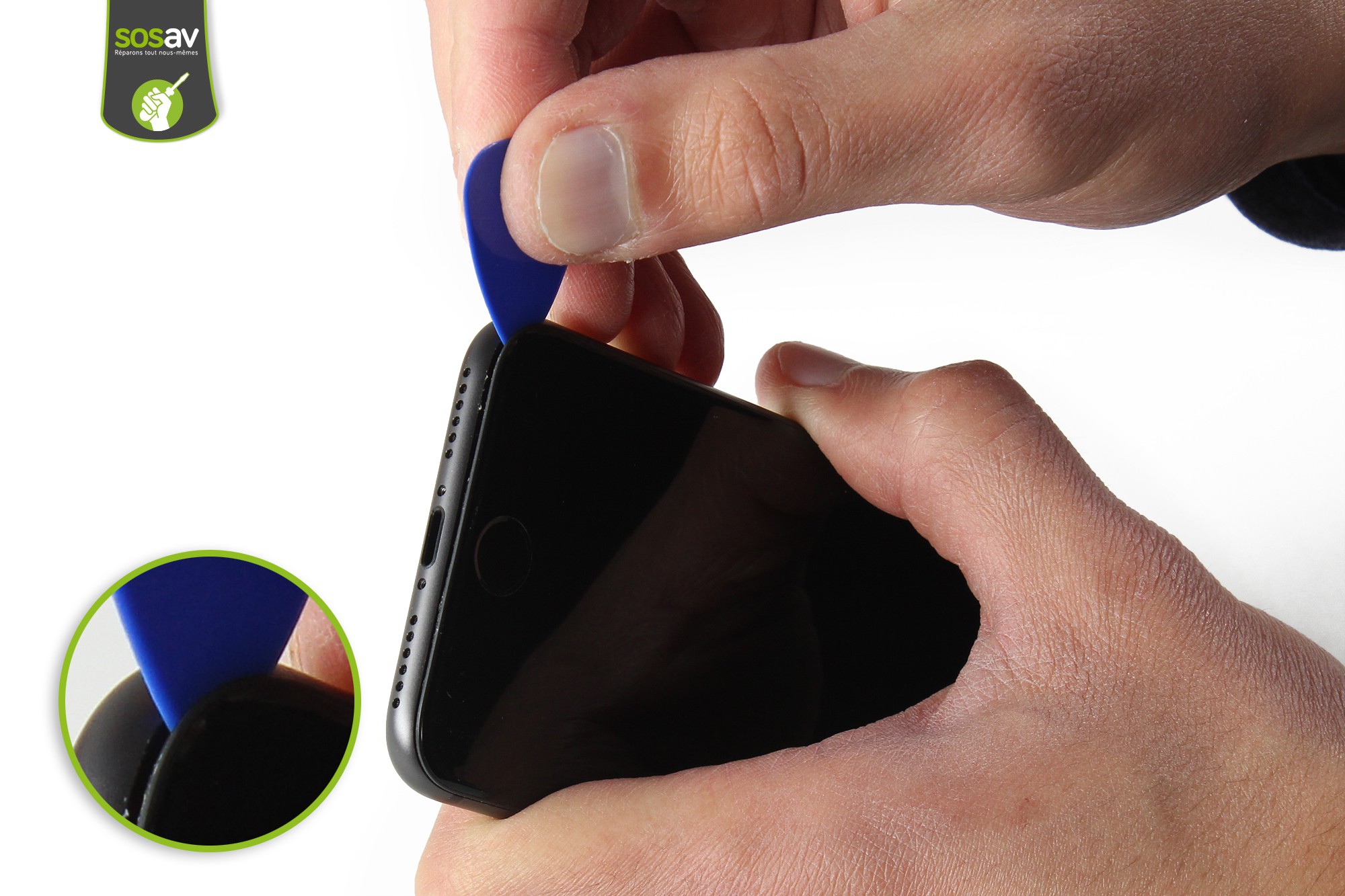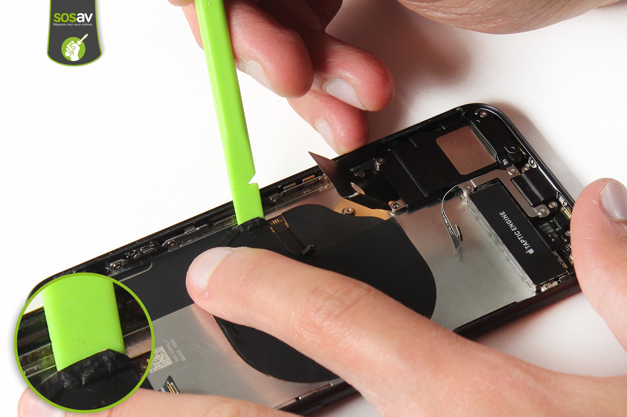 Conservez la spatule en nylon pour déconnecter la nappe de liaison du capteur Force Touch et du bouton home.