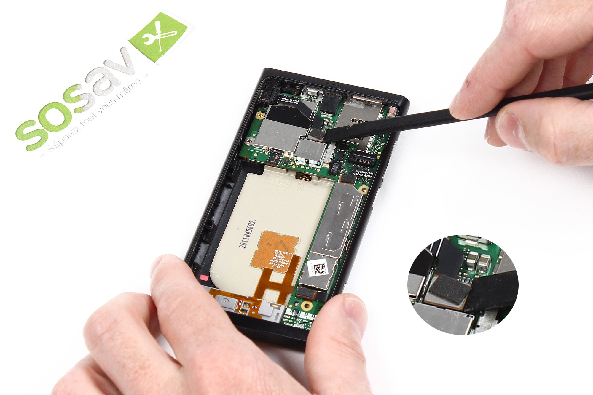 Vous pouvez désormais saisir la carte mère, puis l'extraire délicatement de votre Lumia 800
