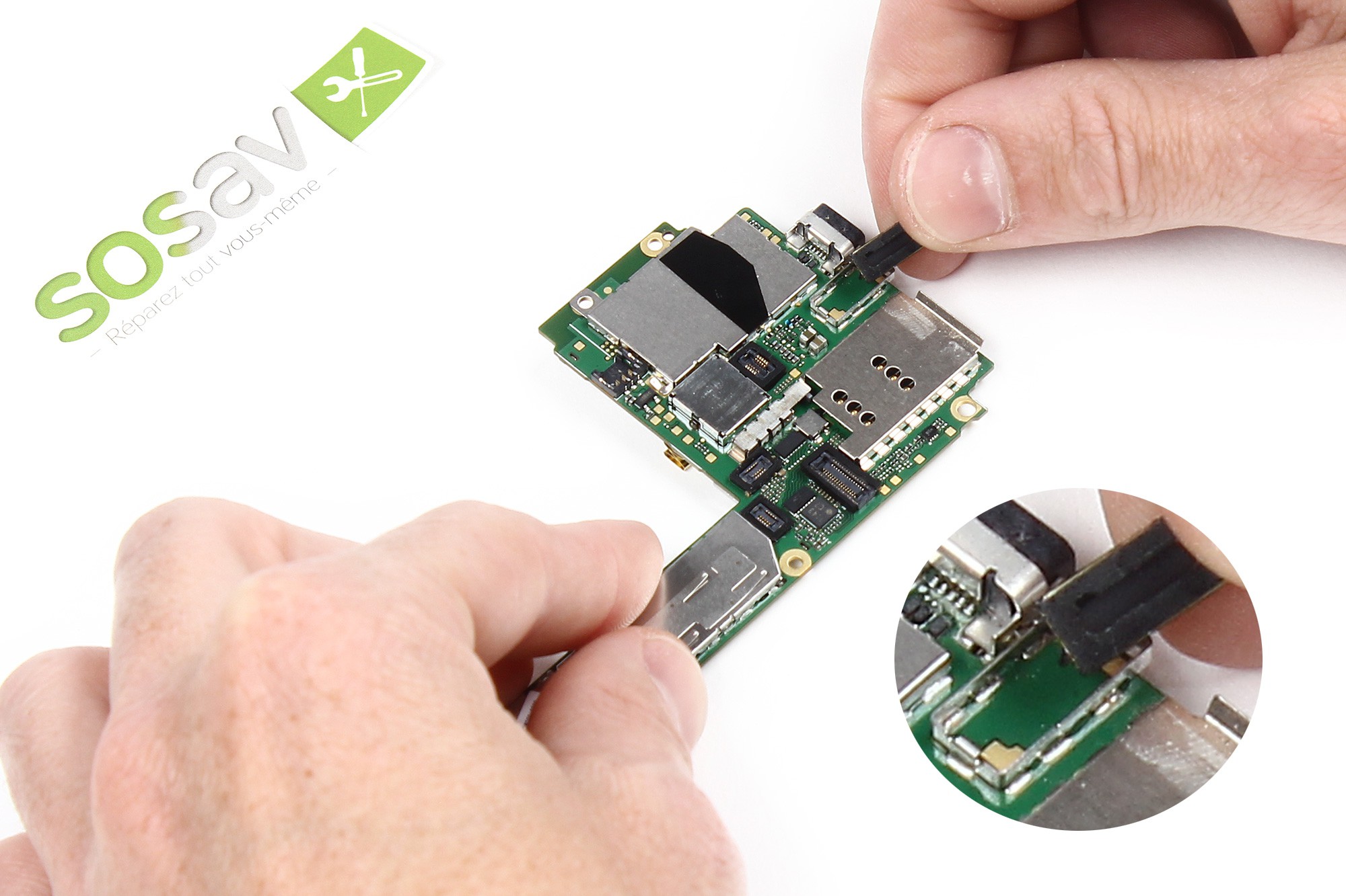 Avec le côté plat de la spatule, soulevez le connecteur pour le sortir de son emplacement.