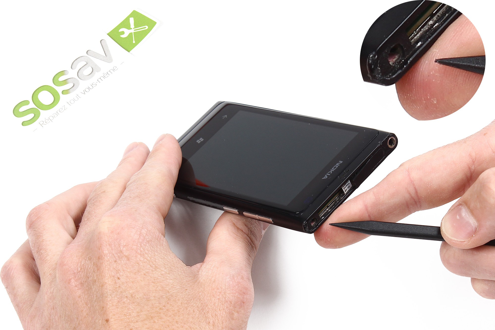 Insérez délicatement la spatule en nylon entre la coque arrière et l'écran de votre Nokia Lumia 800.