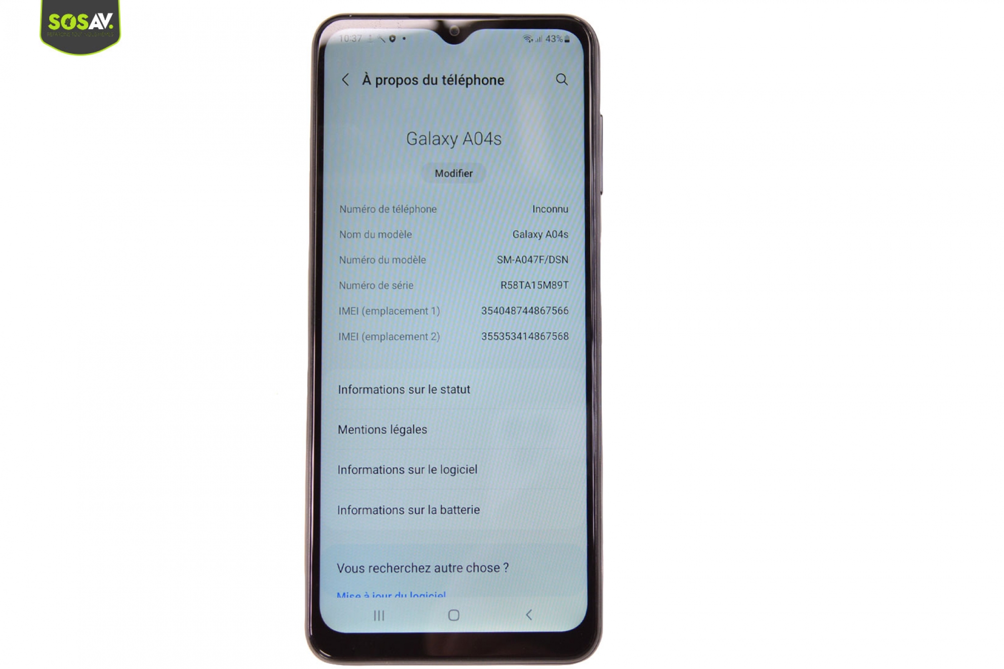 Vous n’entendez plus vos correspondants lorsque vous téléphonez avec votre Galaxy A04 S ? Le son se coupe ou paraît très lointain ? Les conversations avec vos interlocuteurs sont inaudibles alors que de votre coté tout va bien en mode haut-parleur ou pour les autres sons de votre téléphone ? C’est parce qu’il s’agit de deux haut-parleurs distincts ! Dans votre cas, c’est le haut-parleur interne du Galaxy A04s qui pose problème ! C’est lui qui gère le son des appels uniquement. Découvrez comment le remplacer dans ce guide de réparation illustré et commenté que les experts SOSav ont réalisé pour vous. Toutes les étapes sont détaillées afin de vous accompagner lors de la manoeuvre. Vous pourrez ainsi retrouver un téléphone comme neuf pour deux à trois fois moins cher que de passer par un professionnel.