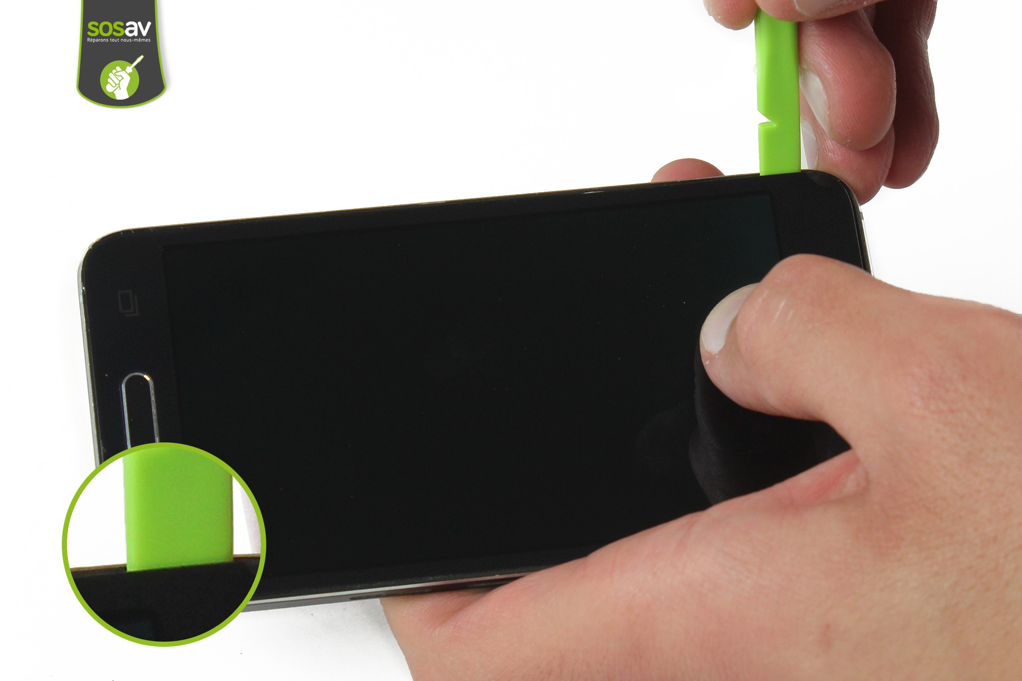Terminez enfin en décollant la partie supérieure de l'écran, toujours avec la spatule en nylon.