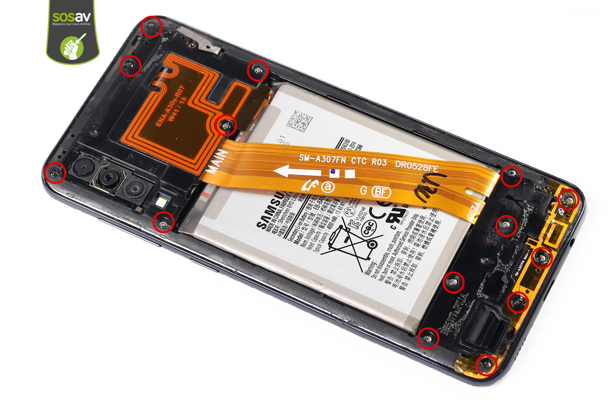 Votre Galaxy A30s ne peut plus prendre de photos ? Les photos sont floues et la mise au point refuse de se faire ? Impossible d'enregistrer une vidéo ? Un message d'erreur s'affiche quand vous tentez d'ouvrir l'application photo ou l'image reste noire ? Pourtant, tout va bien en mode selfie, avec votre caméra avant ? C'est parce qu'il s'agit d'une autre caméra. Le ou plutôt la coupable n’est d’autre que votre caméra arrière Galaxy A30s ! Pour réparer votre Galaxy A30s, nos experts SOSav vous expliquent comment remplacer votre caméra arrière Galaxy A30s dans ce guide de réparation illustré et commenté. Chaque étape est détaillée afin de vous accompagner tout au long de votre réparation Galaxy A30s.