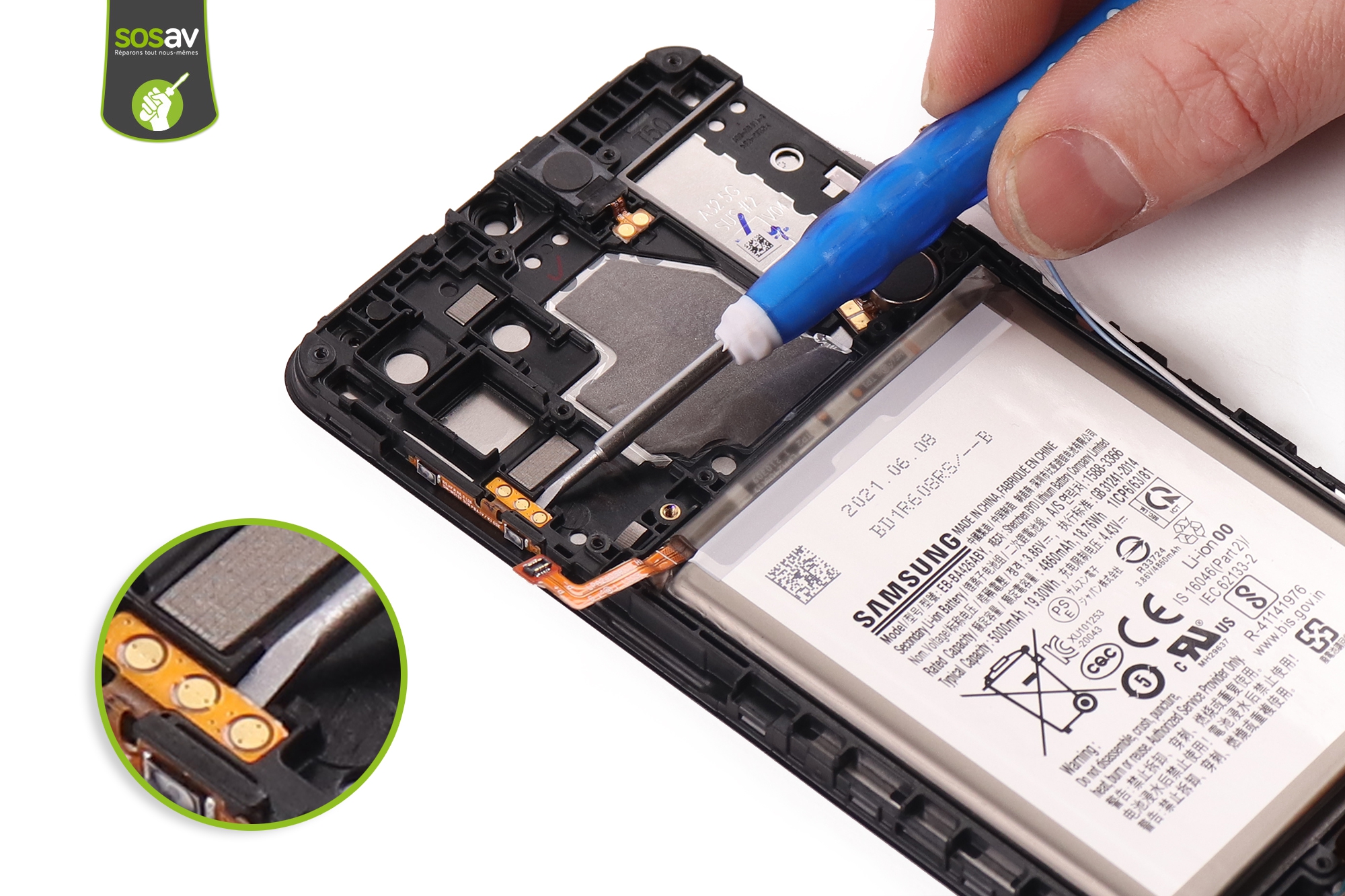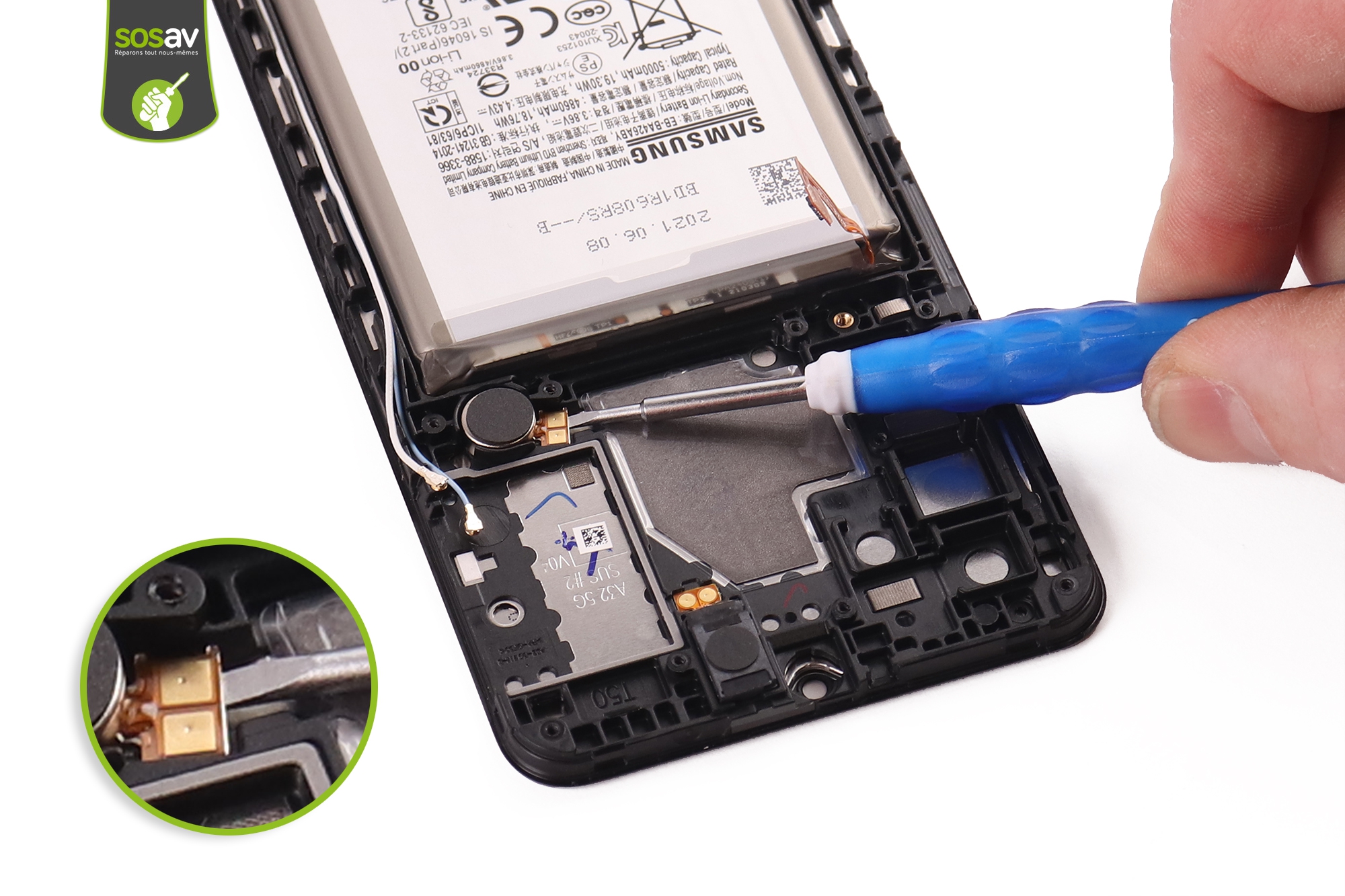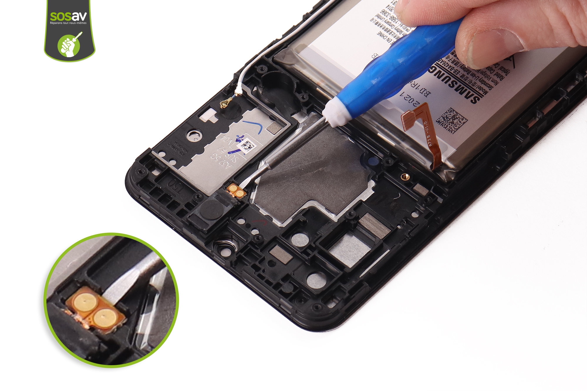Une mauvaise expérience avec le sol a eu raison de votre écran Galaxy A32 ? L’écran est fissuré ou cassé ? L’affichage est trouble et illisible ? Le tactile ne répond plus ? Vous devez lutter pour naviguer parmi vos applications et cela devient invivable ? Mais pourquoi changer de téléphone alors que SOSav vous permet de réparer votre écran Galaxy A32 cassé ? Nos experts ont réalisé ce guide de réparation illustré et commenté afin de reprendre tous les gestes en détails. Vous verrez ainsi que réparer son écran Galaxy A32 est possible en prenant simplement le temps de se pencher sur la question.