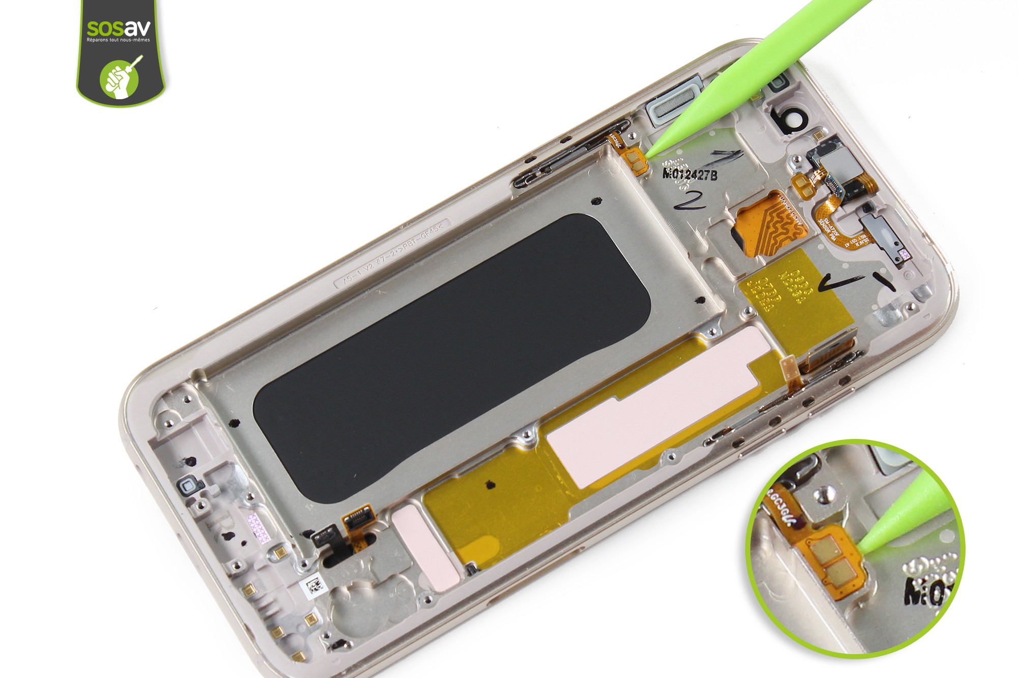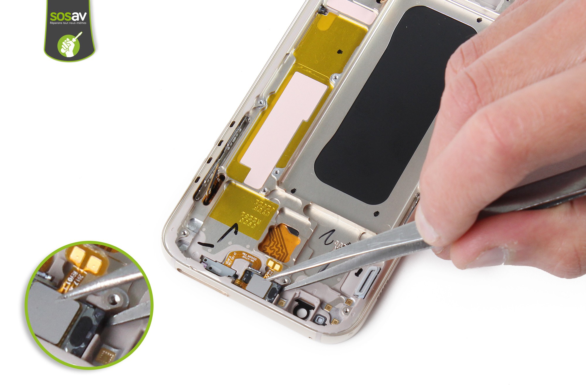 Saisissez ensuite la nappe boutons volume avec la pince et procédez à son retrait.