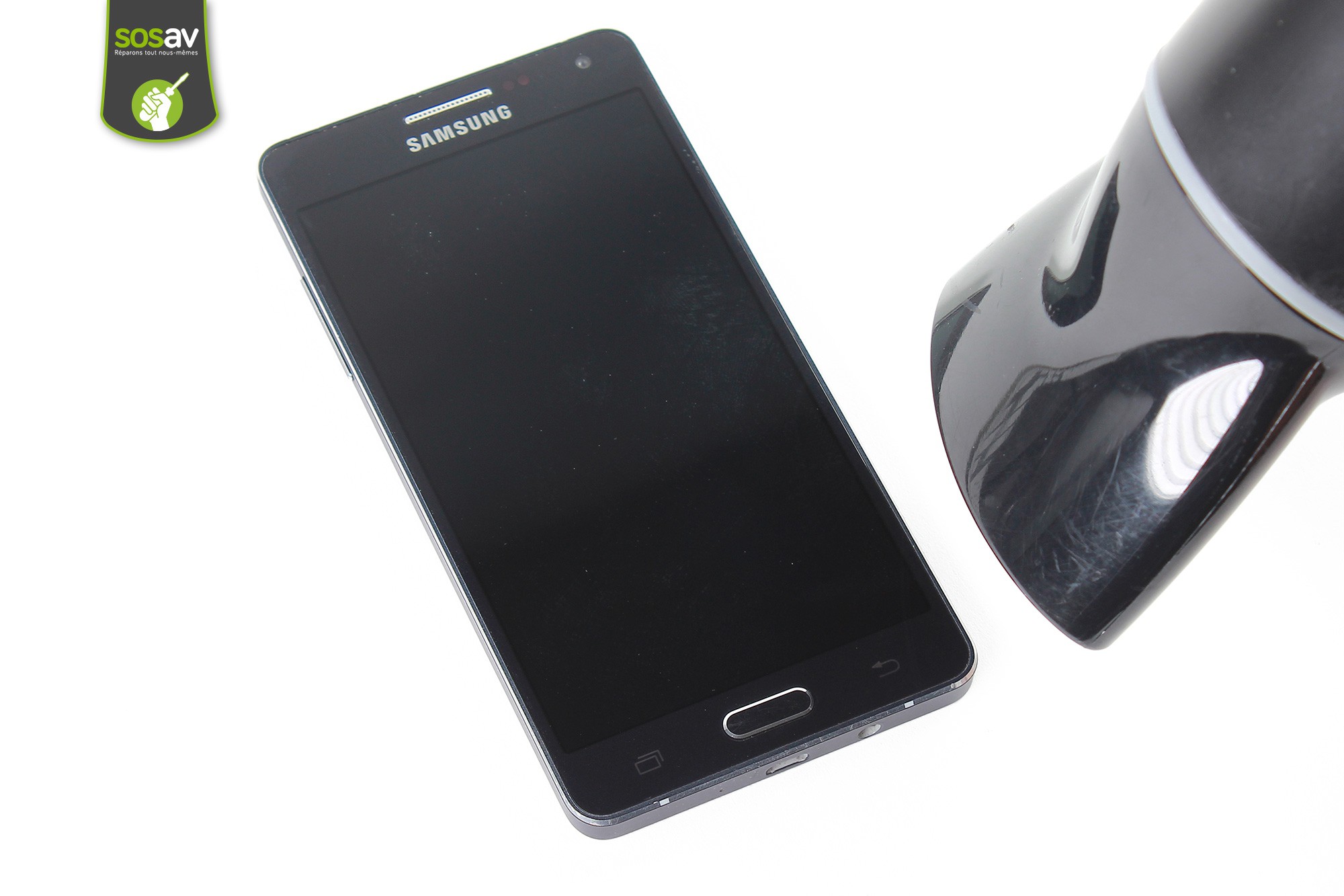 L'écran du Galaxy A5 est collé au châssis interne. Pour accéder à l'intérieur du téléphone il est donc nécessaire de chauffer l'écran pour "ramollir" la colle.Munissez-vous d'un sèche-cheveux afin de chauffer tout le contour de la vitre tactile (ne pas chauffer l'écran LCD, concentrez-vous sur le contour !).Le LCD du Galaxy A5 est extrèmement fin et très fragile, soyez minutieux et patient lors de son retrait pour éviter de l'endommager.