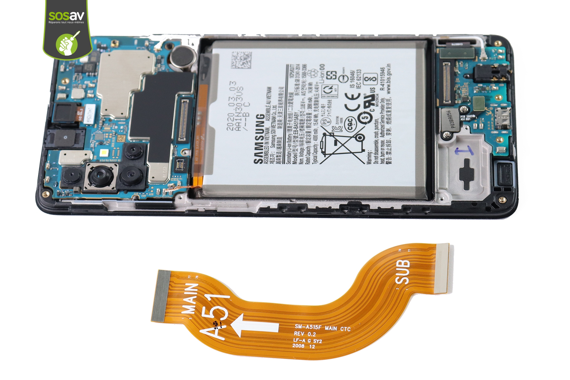 Chez SOSav, nous savons bien qu’une batterie téléphone n’a qu’une durée de vie limitée et la batterie Galaxy A51 ne fait pas exception. Elle perd en capacité au fil des recharges.. c’est typiquement ce qu’on appelle, l’obsolescence programmée. Mais vous êtes au bon endroit pour résoudre vos soucis puisque nos techniciens ont réalisé ce guide de réparation afin de vous expliquer comment changer votre batterie Galaxy A51. Pas besoin de connaissances techniques particulières mais simplement de suivre nos conseils. Toutes les étapes sont détaillées de A à Z à travers des images des commentaires afin de vous prouver qu’il est possible de changer sa batterie Galaxy 51 soi-même !