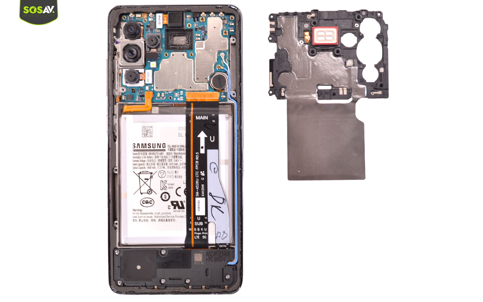 Qu’en est-il de la réparation Galaxy A52 S ? Le processus de réparation du Samsung Galaxy A52 S est similaire à celui des autres modèles. Il faut d'abord retirer la vitre arrière, qui est bien collée, mais une fois cette étape franchie, la plupart des composants sont relativement faciles d'accès. C'est une bonne chose pour la réparabilité de ce téléphone, car vous pouvez réparer le châssis, les caméras, le connecteur de charge, les haut-parleurs et bien sûr la batterie. Cependant, le remplacement de l'écran du Galaxy A52 S demande de la patience, car il est nécessaire de retirer plusieurs éléments pour l'isoler et le remplacer. En résumé, la réparation du Galaxy A52 S reste accessible au grand public, surtout en suivant les conseils de nos techniciens à travers nos tutoriels illustrés et commentés. Bien sûr, si vous avez des questions concernant une panne ou votre réparation Galaxy A52 S, notre équipe technique SOSav est là pour vous aider.