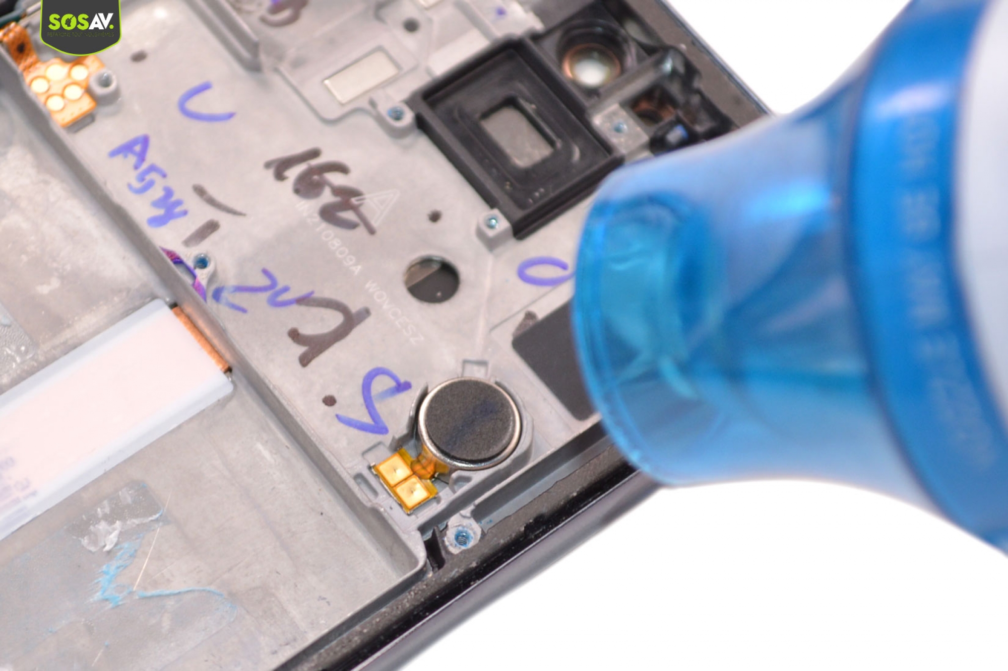 Une fois cela fait mettez des pinces sur les cotés de votre A52 S (si vous n'avez pas de pince a votre disposition vous pouvez aussi mettre de gros livres lourd sur le téléphone).