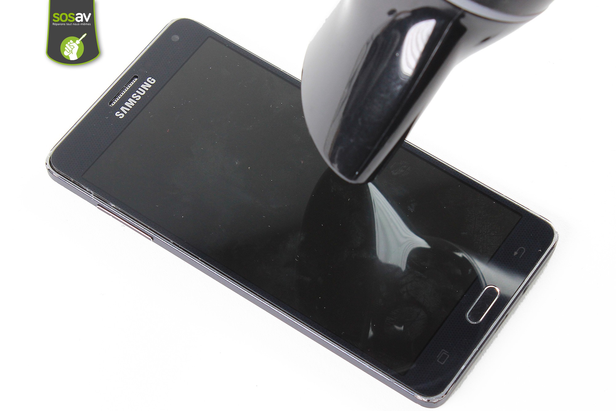 L'écran du Samsung Galaxy A7 est collé au châssis interne du téléphone.Prenez le sèche-cheveux afin de chauffer le contour de l'écran complet durant 20 à 30 secondes.Veillez à ne chauffer que le contour de l'écran et non le centre du LCD pour ne pas l'abîmer.Le LCD du Galaxy A7 est extrèmement fin et très fragile, soyez minutieux et patient lors de son retrait pour éviter de l'endommager.