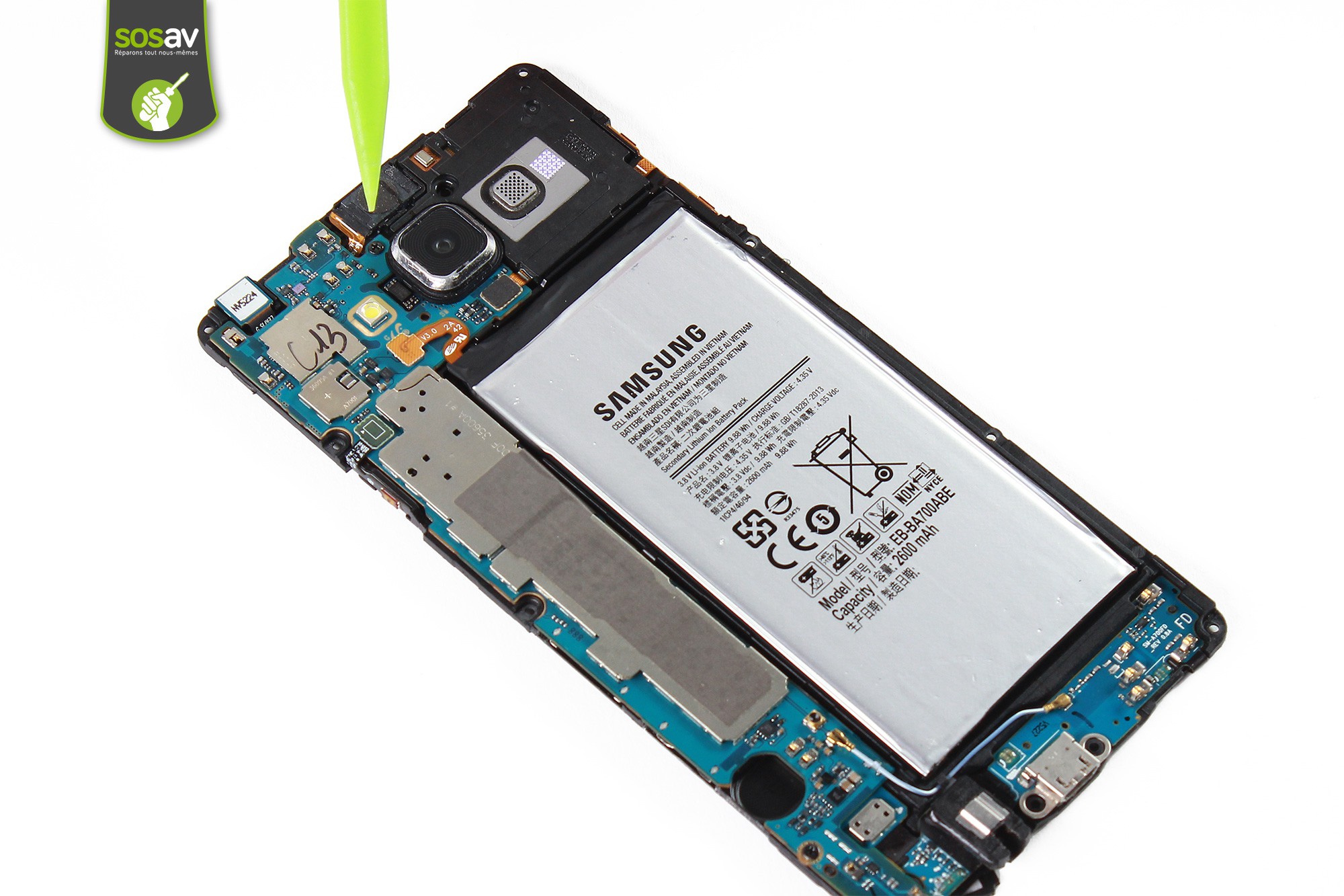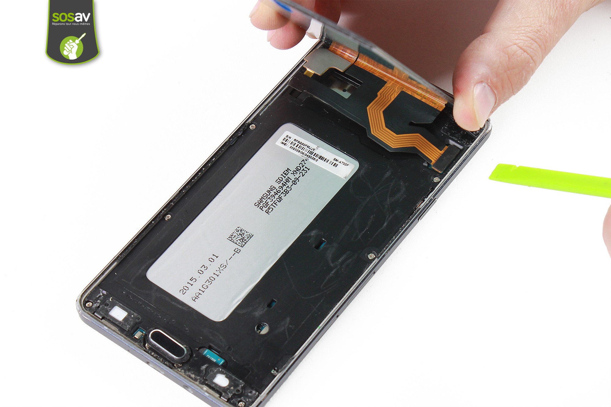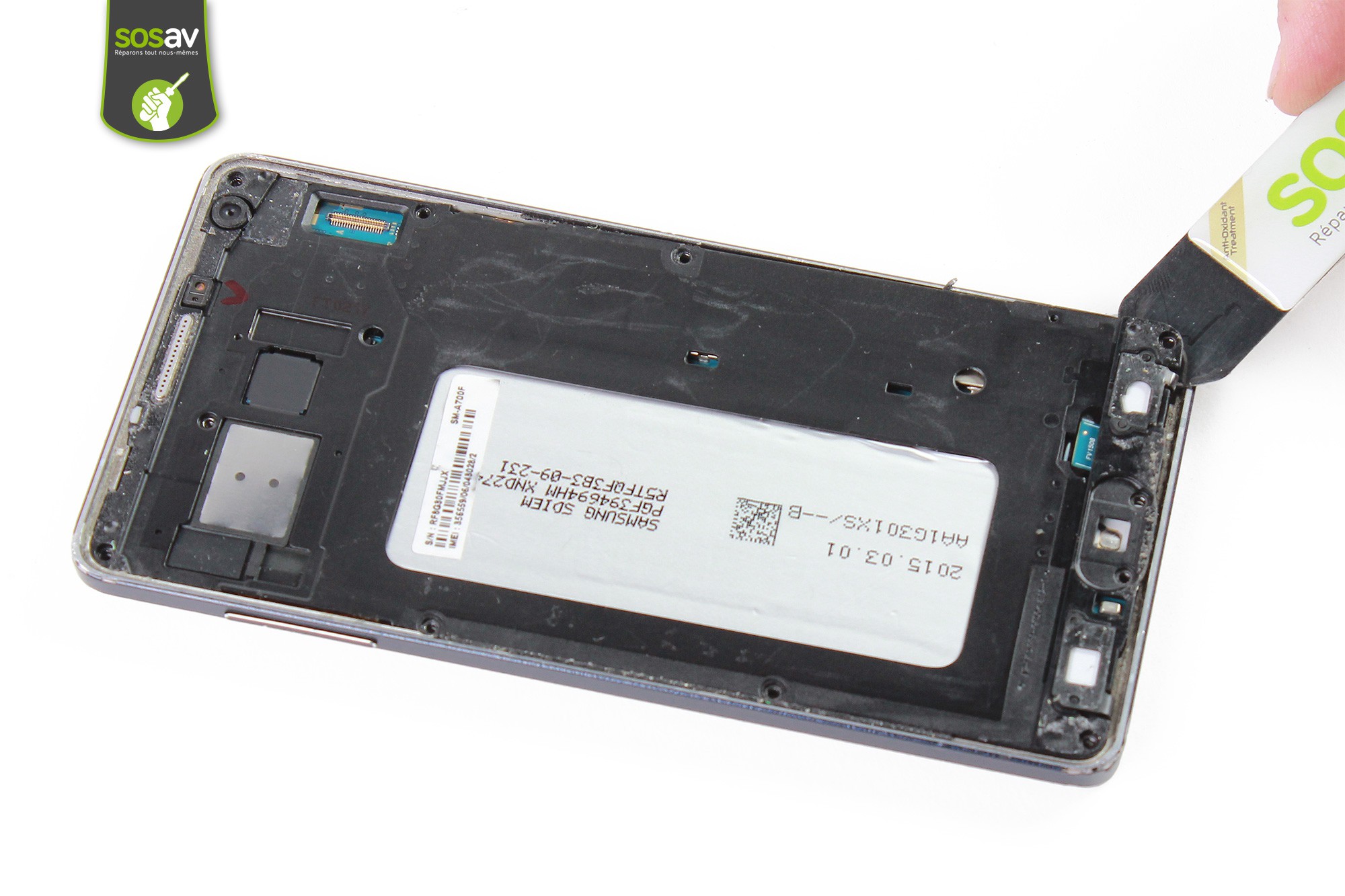 Les techniciens de SOSav ont préparé un tuto de réparation vous expliquant toutes les étapes à suivre à travers des commentaires et des photos pour vous accompagner lors du démontage de votre Galaxy A7. Un dépannage qui vous reviendra jusqu'à trois fois moins cher qu'une intervention en boutique, alors redonnez vie à votre smartphone.