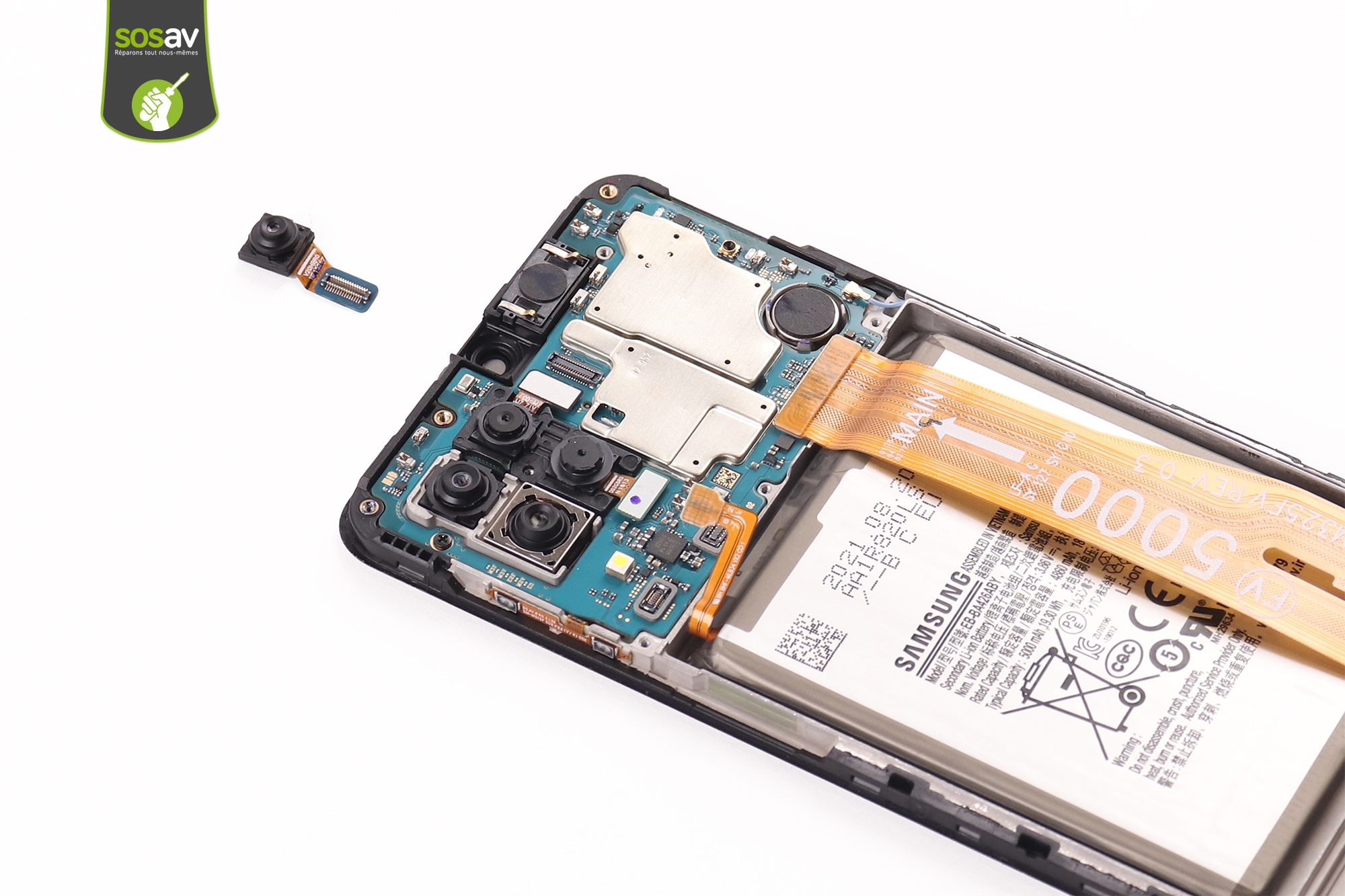 Impossible de prendre des selfies avec votre téléphone ? La caméra avant Galaxy M32 ne fonctionne plus et affiche un message d’erreur ? Les selfies sont flous ou ratés ? Pas de soucis, vous êtes au bon endroit pour remplacer cette caméra avant Galaxy M32 défectueuse. Les techniciens SOSav vous montrent les étapes à suivre pour cela à travers ce guide de réparation illustré et commenté. En quelques minutes seulement, vous aurez l’occasion de retrouver un téléphone fonctionnel sans avoir à vous ruiner dans un nouveau mobile ou chez un réparateur téléphone !
