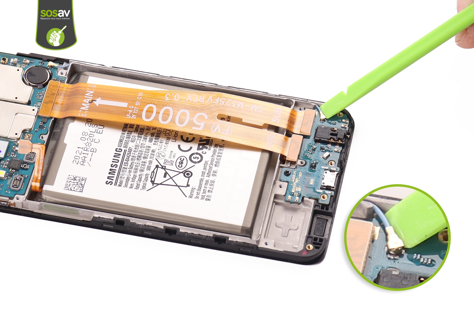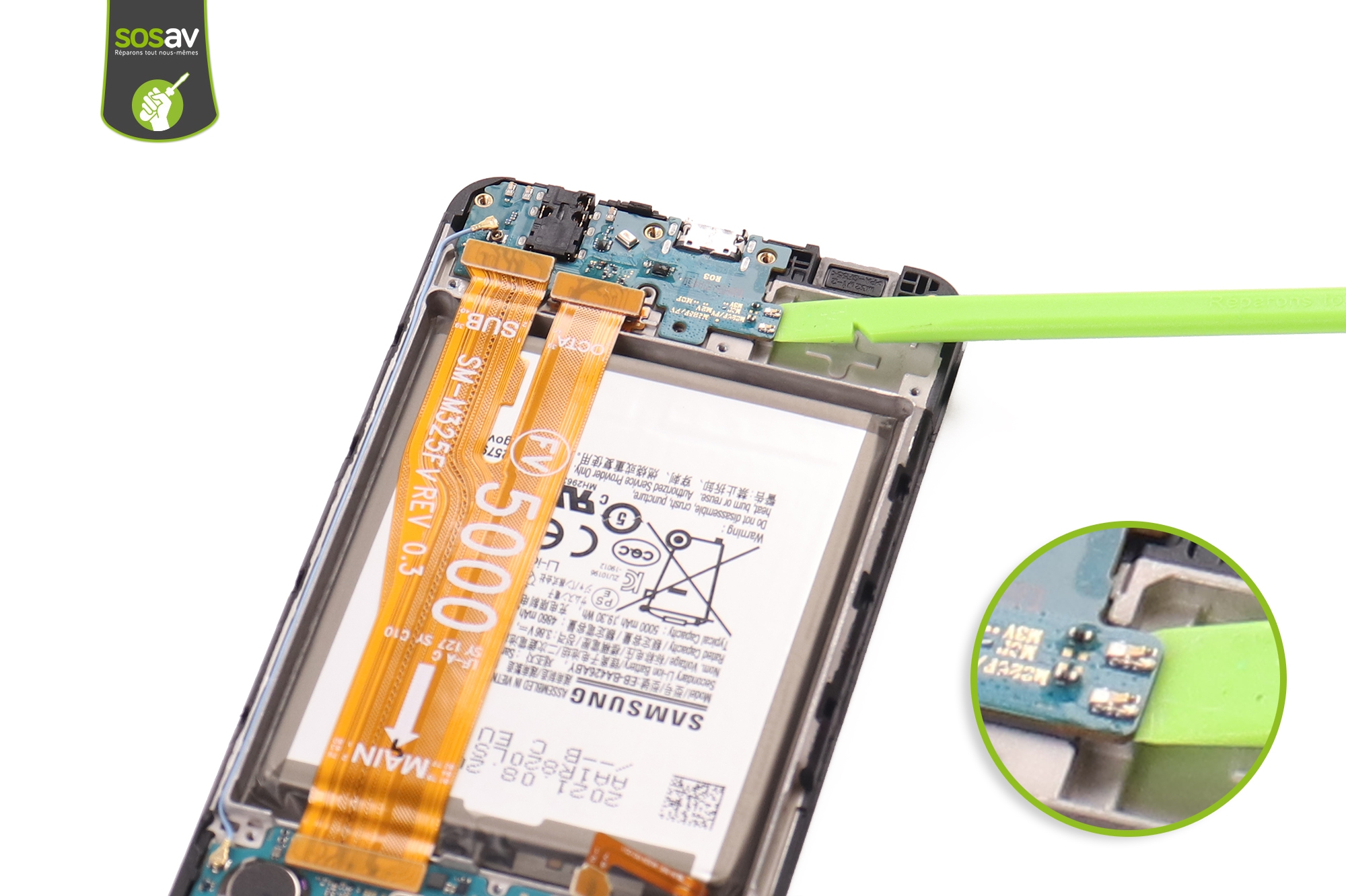 Vous en avez marre d’être dans l’angoisse de problèmes de charge rencontrés par votre Galaxy M32 ? Il ne détecte plus aucun câble ni chargeur Samsung, impossible de sauvegarder vos données sur un PC… Bref, c’est l’enfer ! Mais vous êtes au bon endroit pour régler ce soucis au plus vite. Les experts SOSav vous montrent la marche à suivre pour remplacer le connecteur de charge Galaxy M32 vous-même pour deux à trois fois moins cher. Comment ? En suivant tout simplement notre guide de réparation. Toutes les étapes sont illustrées et commentées afin de vous accompagner tout au long de changement de connecteur de charge Galaxy M32.
