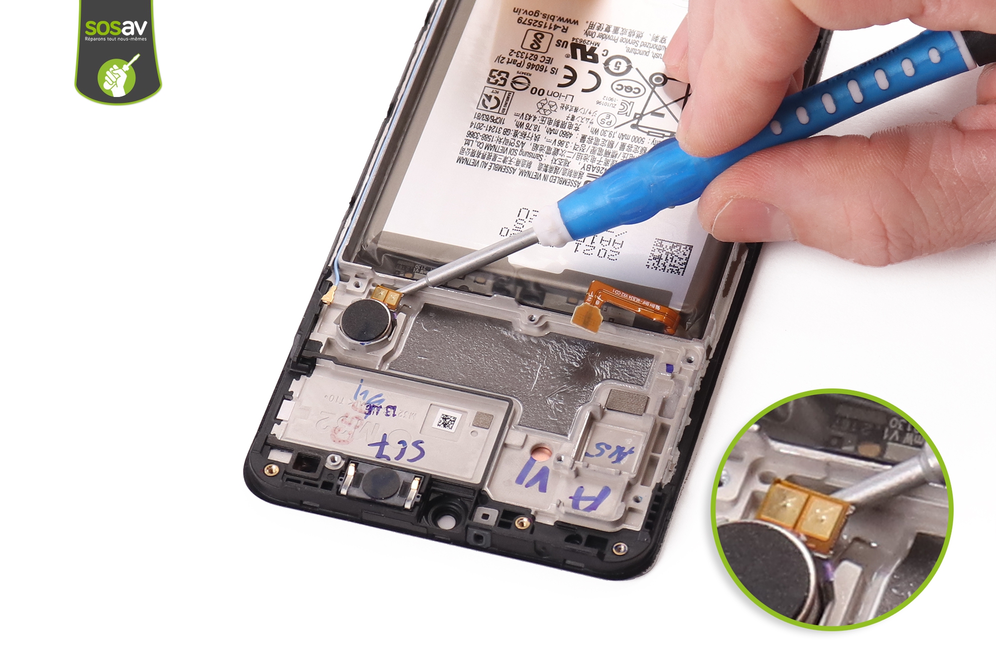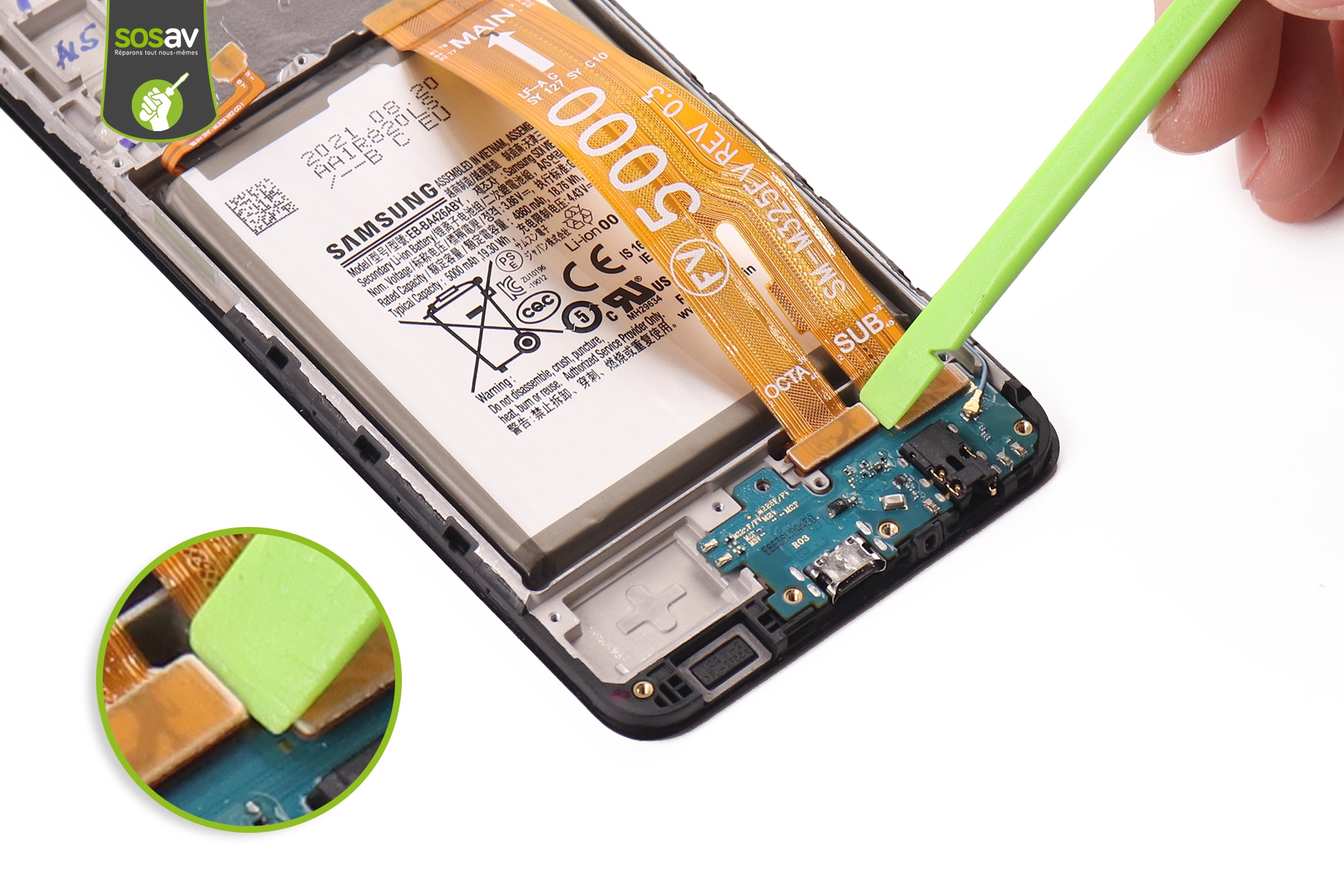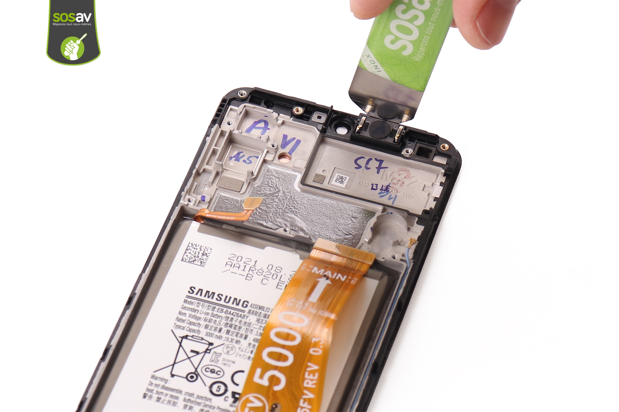 Votre écran Galaxy M32 n’a pas survécu à une mauvaise chute ? L’écran est fissuré ou cassé ? L’image reste noire alors que le téléphone sonne et vibre pour montrer qu’il est bien vivant ? Le tactile ne répond plus correctement voire plus du tout ? Impossible d’utiliser votre mobile… Mais pourquoi changer de téléphone quand vous pouvez le réparer grâce à SOSav ? Nos techniciens ont réalisé ce guide de réparation illustré et commenté afin de vous prouver que changer son écran Galaxy M32 est possible pour le commun des mortels. Toutes les étapes sont détaillées afin de vous accompagner de A à Z et vous permettre de redonner vie à votre mobile.