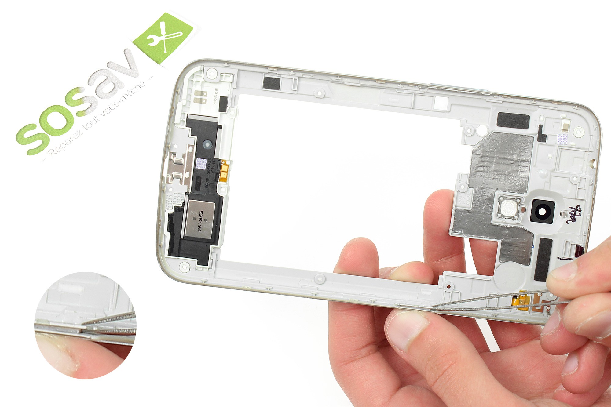 Cette opération permet de séparer le châssis interne du reste du téléphone.
