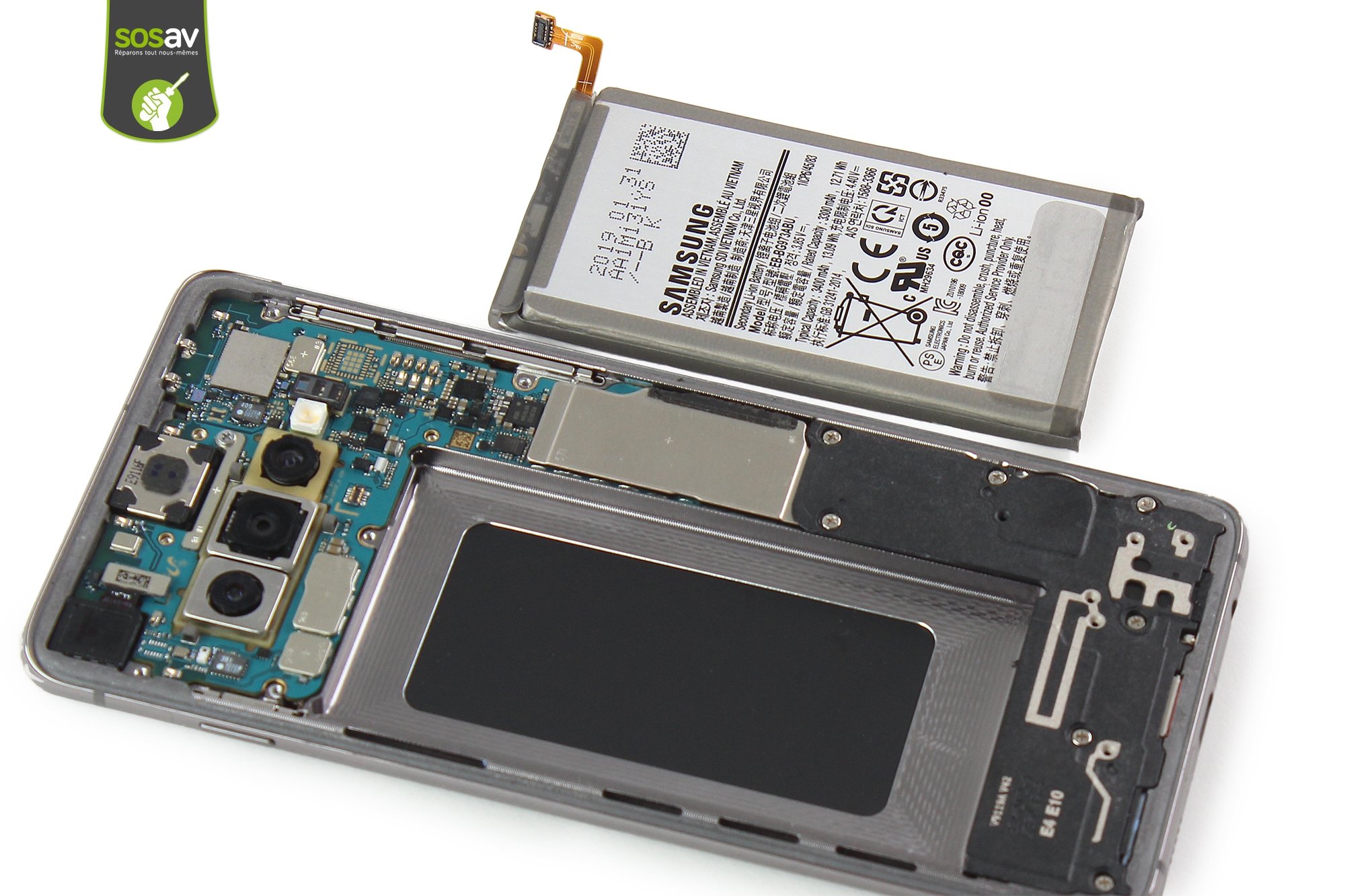 Chez SOSav, nous savons que la batterie Galaxy S10, comme toutes les batteries smartphones, sont les composants les plus sujets à l'usure. Leurs cellules perdent en capacité au fil des recharges et provoquent une baisse de leur autonomie, même si vous en prenez soin et vous avez bien entretenu votre batterie S10. Mais si la batterie d'un smartphone n'est plus aussi accessible qu'auparavant, ce n'est pas une opération impossible pour autant. Vous ne changeriez pas de voiture pour une batterie à plat ? Et bien c'est pareil avec votre précieux téléphone !
