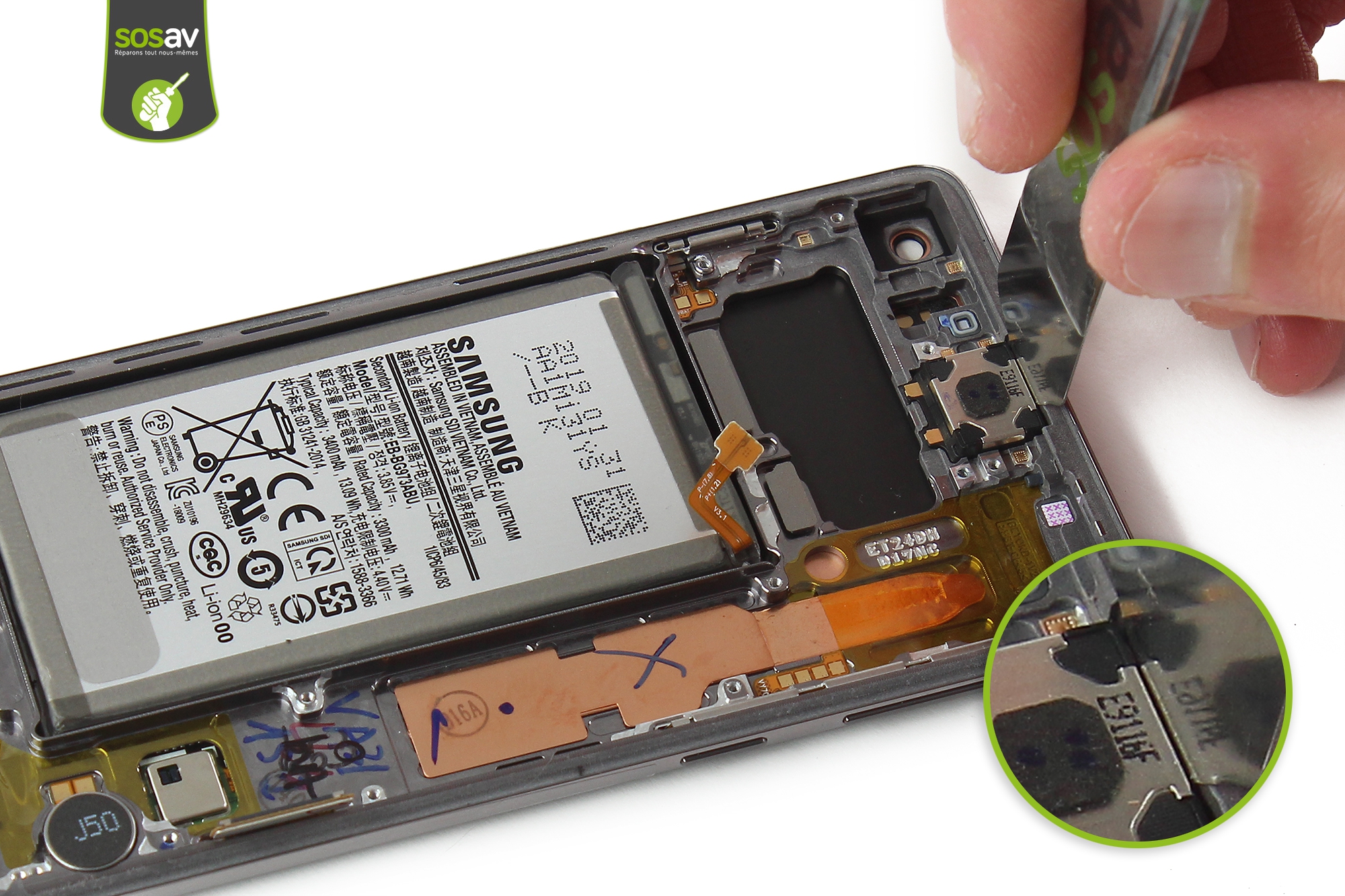 Vous avez beau monter le son au maximum, vous n'arrivez pas à entendre vos interlocuteurs lorsque vous passez un appel avec votre Galaxy S10 ? Le son est faible ou grésille, devenant totalement inaudible ? Ou le son se coupe par intermittence voire tout le temps, vous obligeant à utiliser un kit mains libres ou à mettre le mode haut-parleur ? D'ailleurs, pourquoi le son fonctionne en dehors des appels et même en mode haut-parleur ? Car c'est un autre haut-parleur qui entre en jeu ! Il y en a deux sur le Galaxy S10 (comme sur tous les smartphones), et celui qui vous pose problème est votre haut-parleur interne Galaxy S10. Il est situé en haut du téléphone afin de délivrer le son des appels. Mais pas de panique, car vous avez frappé à la bonne porte puisque SOSav est LA solution de réparation smartphone qu'il vous faut.