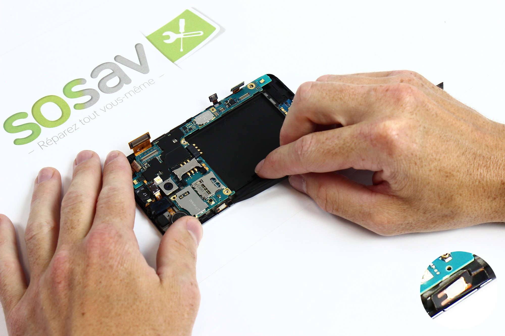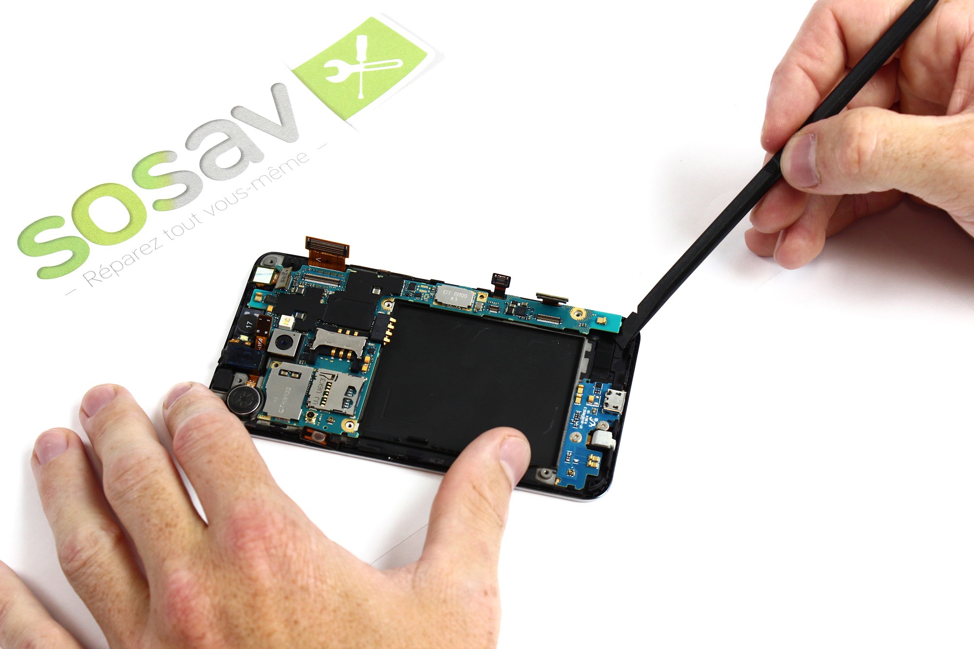 Pour changer votre caméra avant il est nécessaire de démonter la carte mère du Galaxy S2.