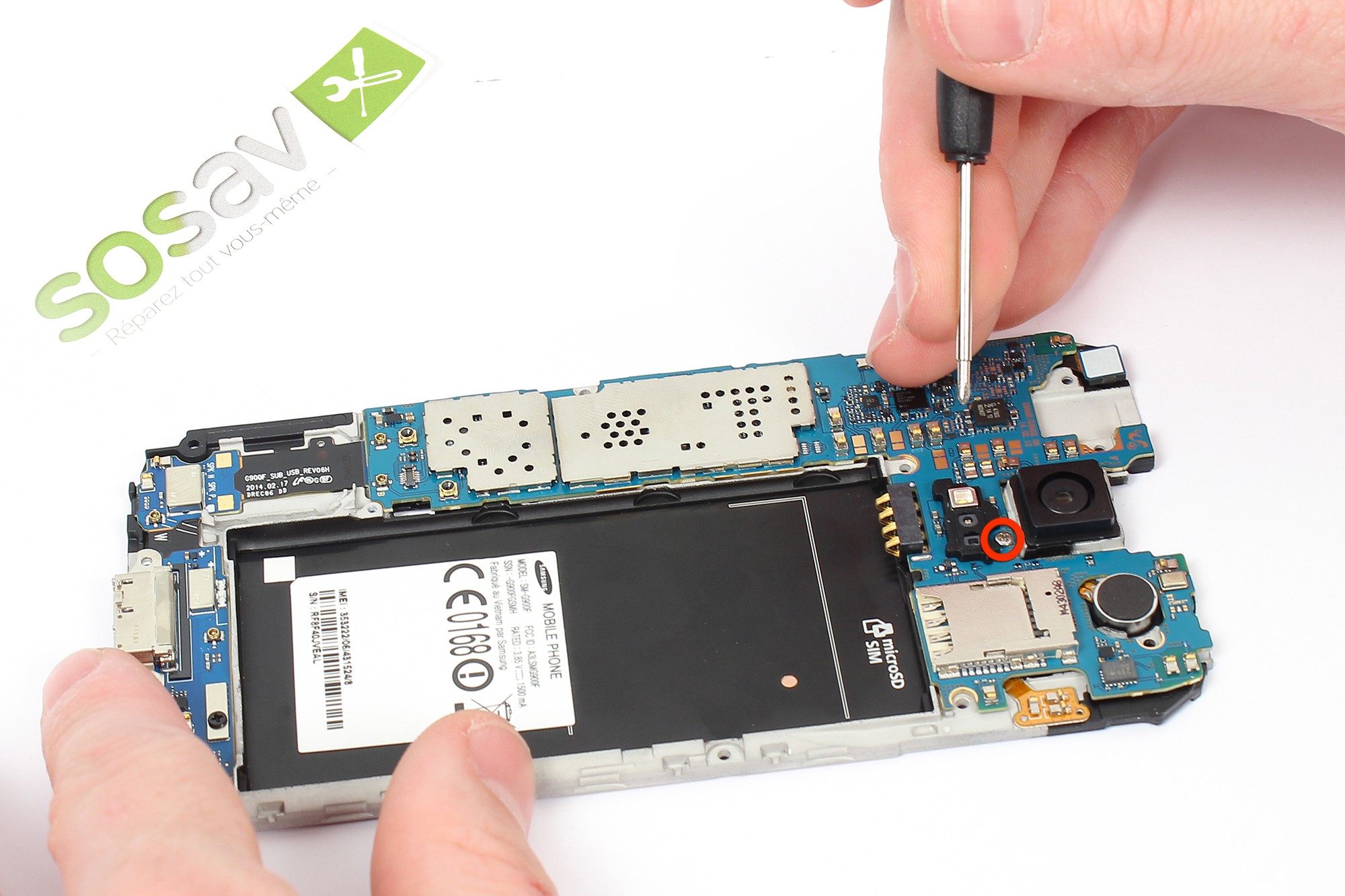 Pour remonter votre Samsung Galaxy S5 suivez ce guide en sens inverse.
