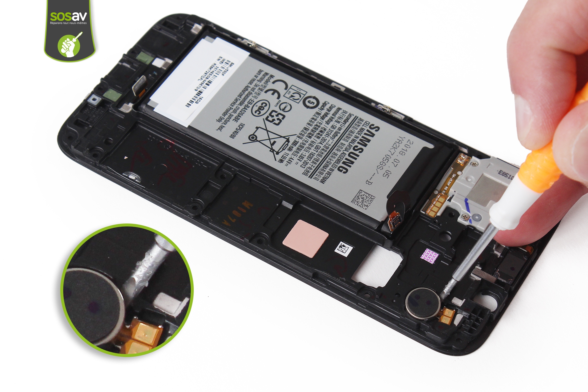 Vous souhaitez effectuer la réparation de votre vibreur Galaxy J5 2017 seul, vous avez donc entendu parler de nos guides de réparations gratuits, disponibles sur notre site SOSav ! Bien évidemment nous avons un guide pour le vibreur, vous pourrez donc le faire sans avoir à demander l'aide d'un professionnel, vous faites ainsi des économies, et cela est merveilleux pour votre portefeuille. Vous avez juste à suivre les différentes étapes qui sont illustrées, commentées et détaillées, vous ne devriez rencontrer aucuns problèmes, tout est bien expliqué. Si vous n'avez pas les outils nécessaires, sachez que vous en trouverez sur notre site, tout comme la pièce si vous avez besoin d'un nouveau vibreur et que vous ne savez pas où en trouver, vous pouvez en commander chez nous si vous le souhaitez.
