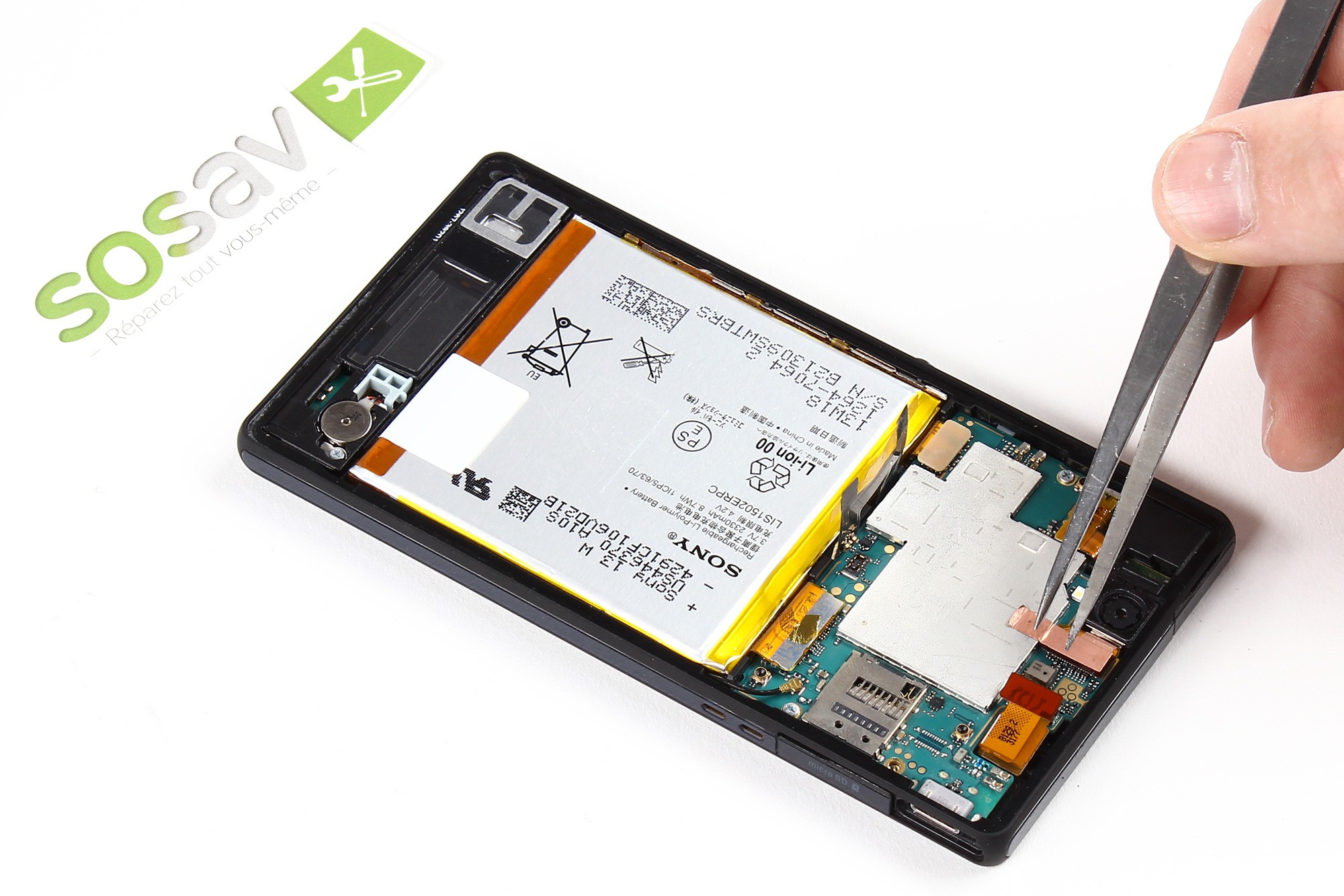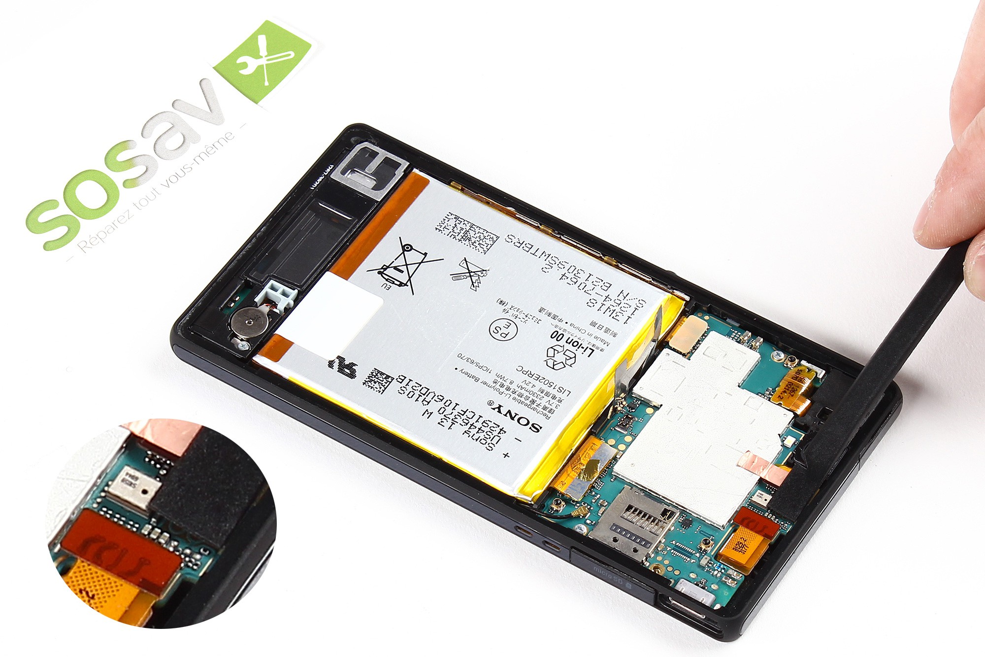 Pour plus d'aisance sur la suite de ce guide, vous pouvez replier la nappe sur la batterie de votre Xperia Z.