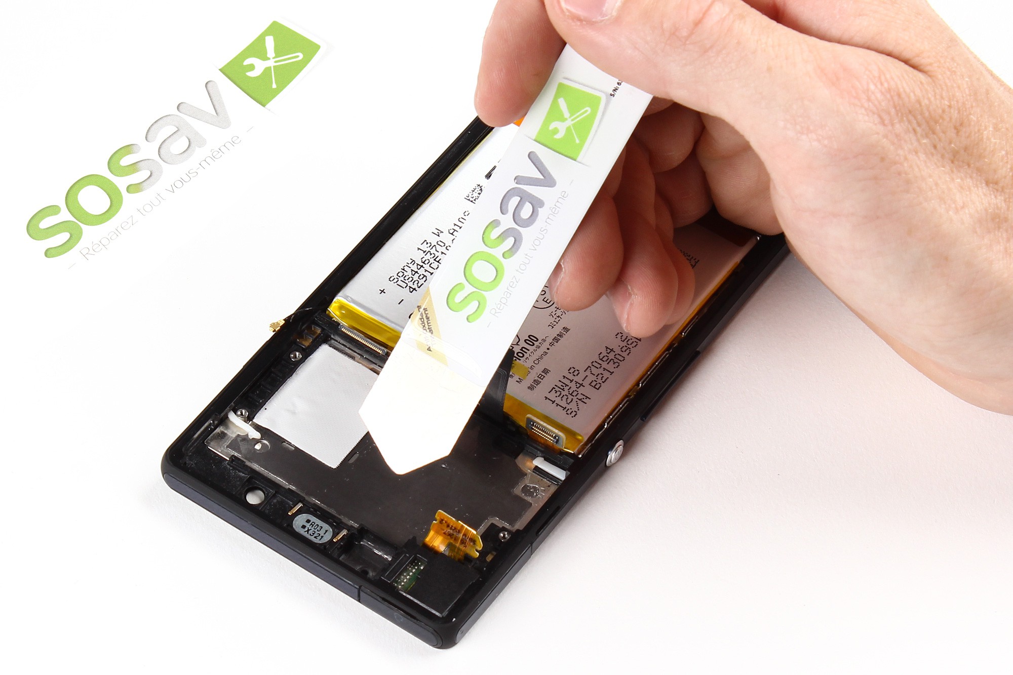 Pour plus d'aisance sur la suite de ce guide, vous pouvez replier la nappe sur la batterie de votre Xperia Z.