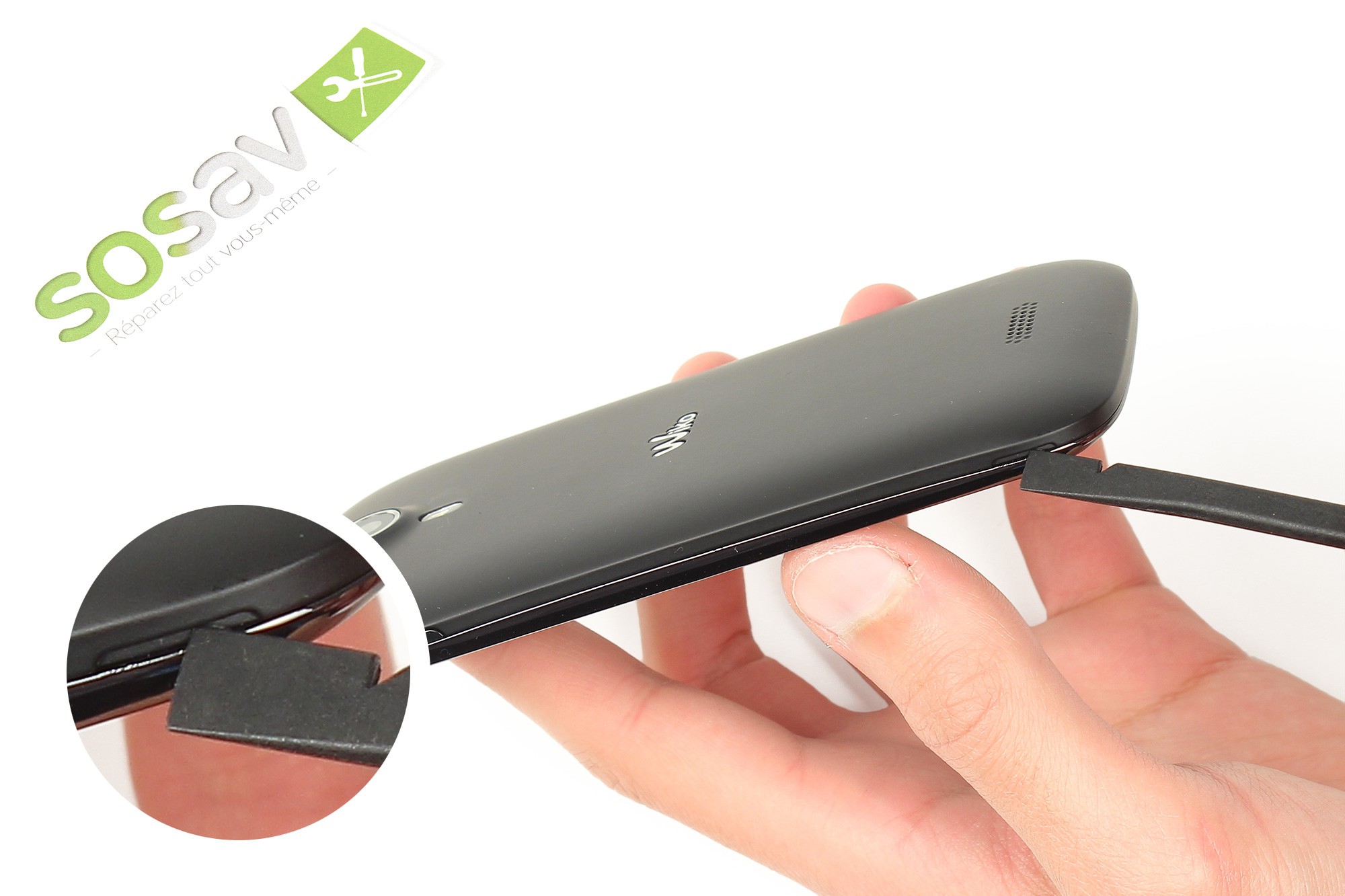 A l'aide d'une spatule en nylon, déclipsez la coque arrière.