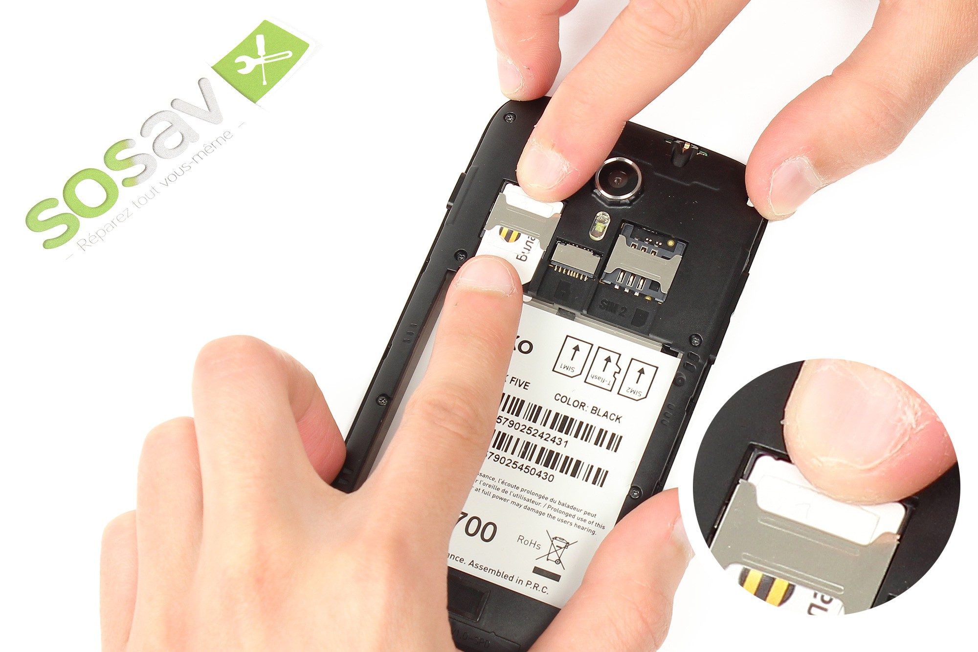 La carte SIM du Wiko Cink Five est désormais démontée.