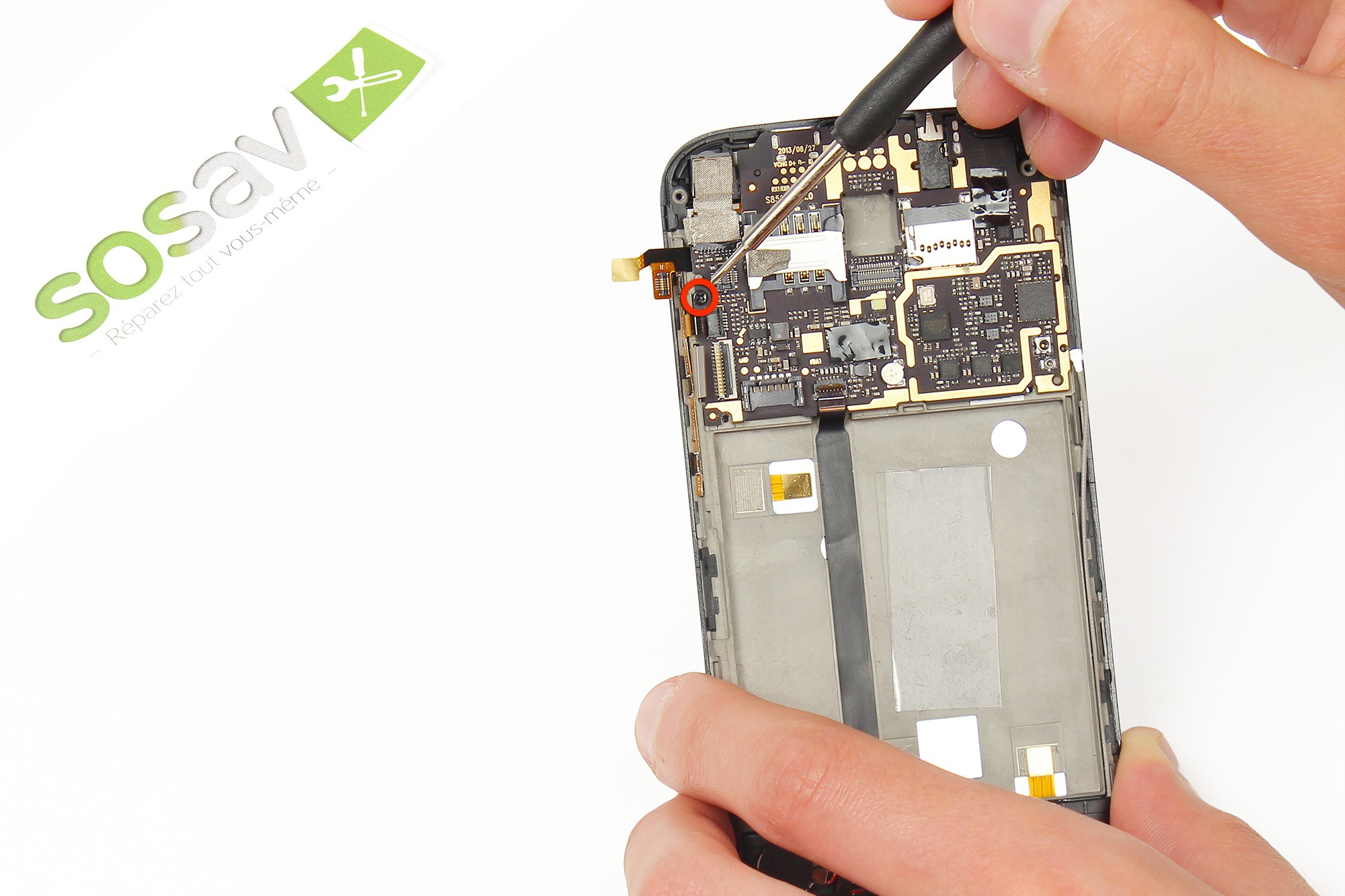 Cette vis sert à maintenir la carte mère du téléphone.