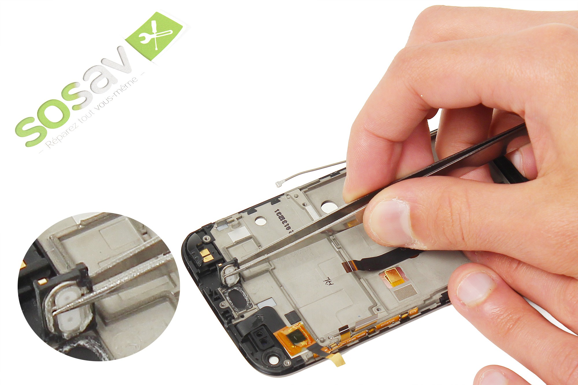 Réutilisez la pince pour saisirle haut-parleur interne puis procédez à sa dépose.