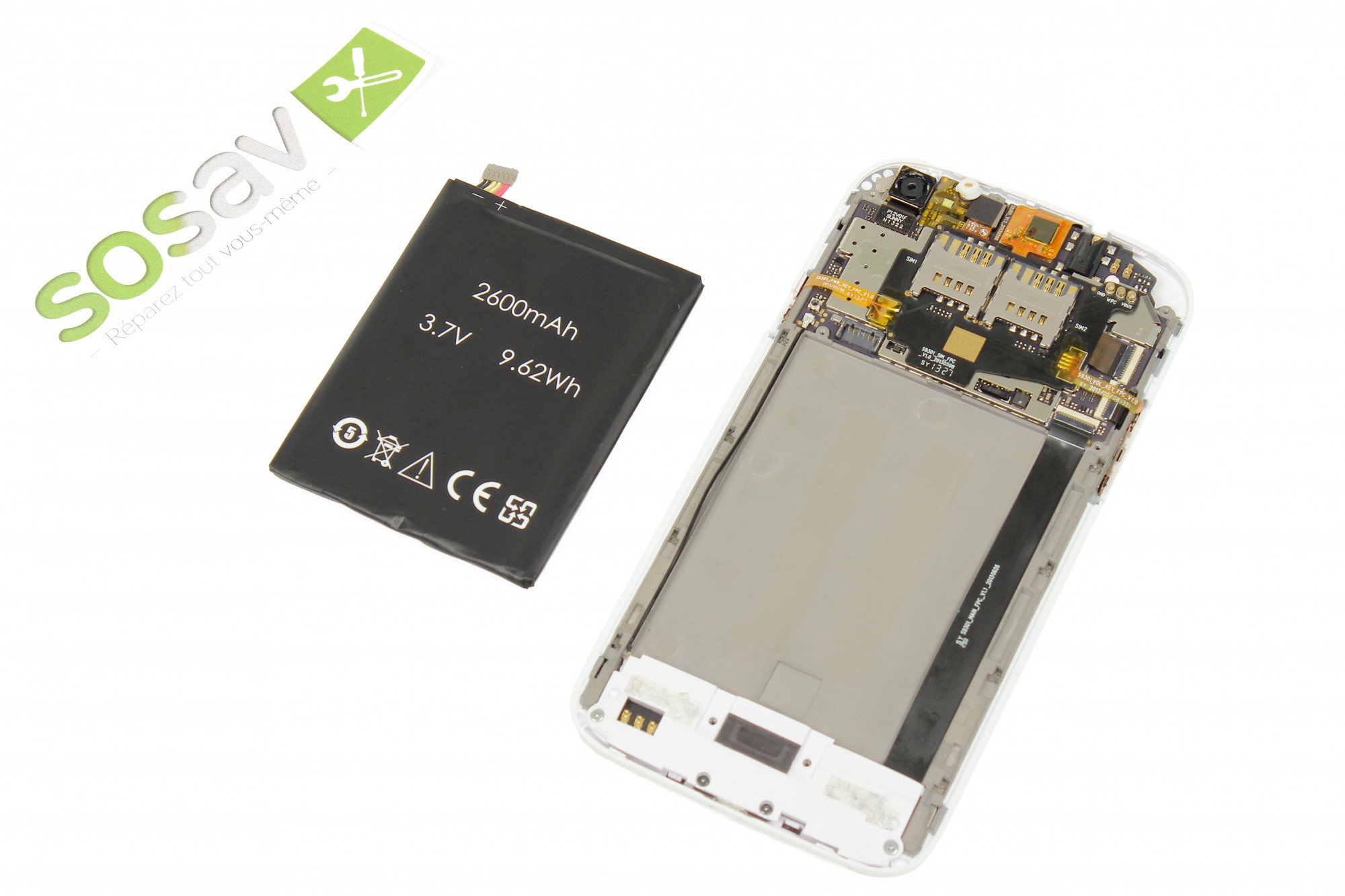 Note : La batterie est collée très fermement au châssis du téléphone ! Soyez minutieux lors de cette opération afin de ne pas l'endommager.