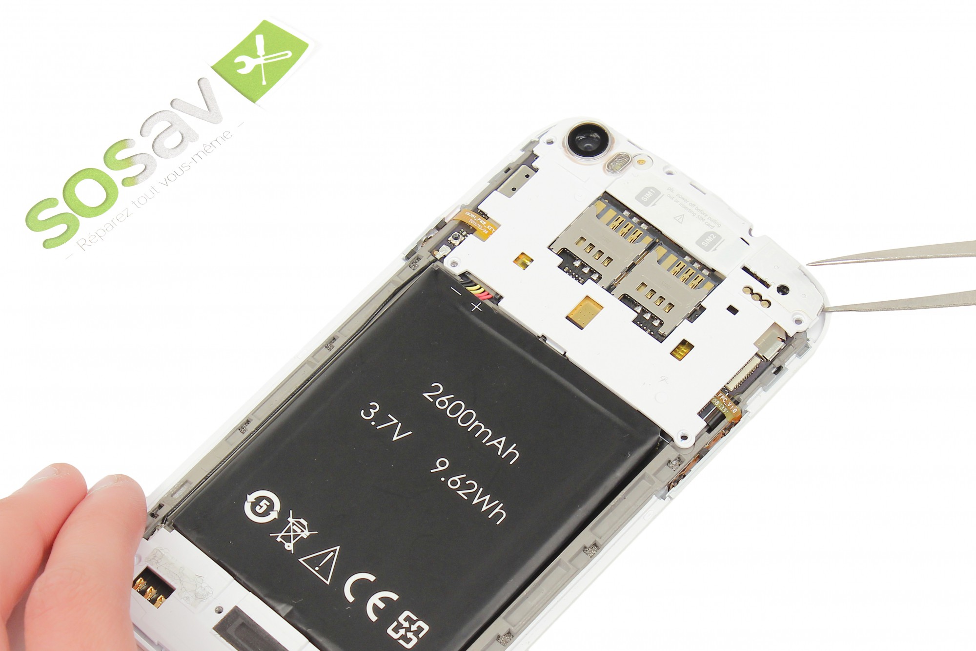 Note : La batterie est collée très fermement au châssis du téléphone ! Soyez minutieux lors de cette opération afin de ne pas endommager cette dernière.