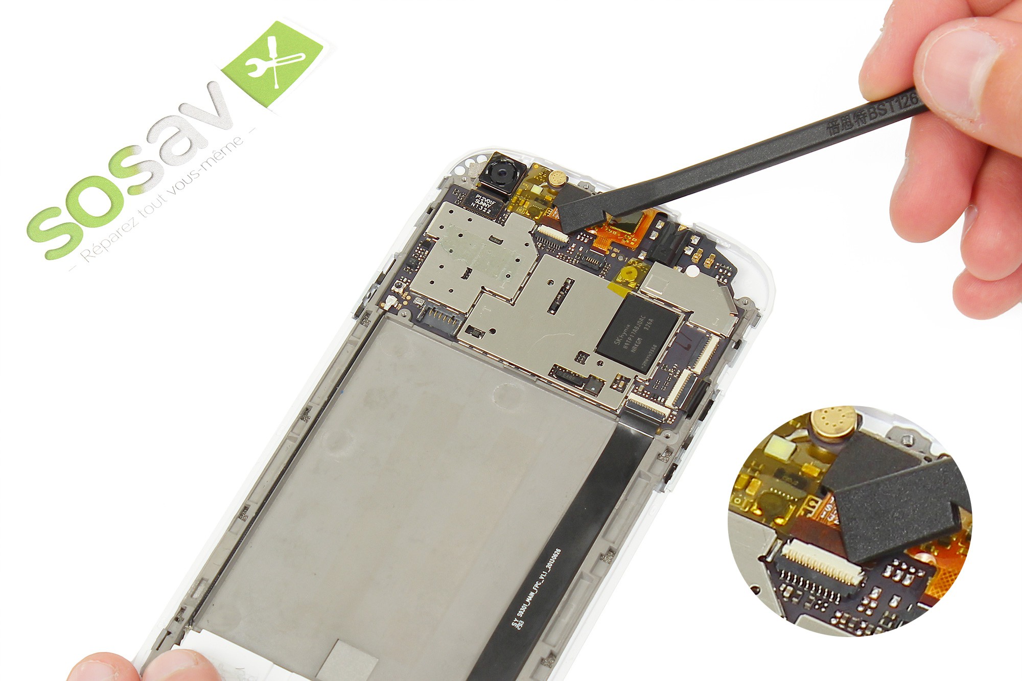 Avec la spatule en nylon, déverrouillez le connecteur de la caméra avant.