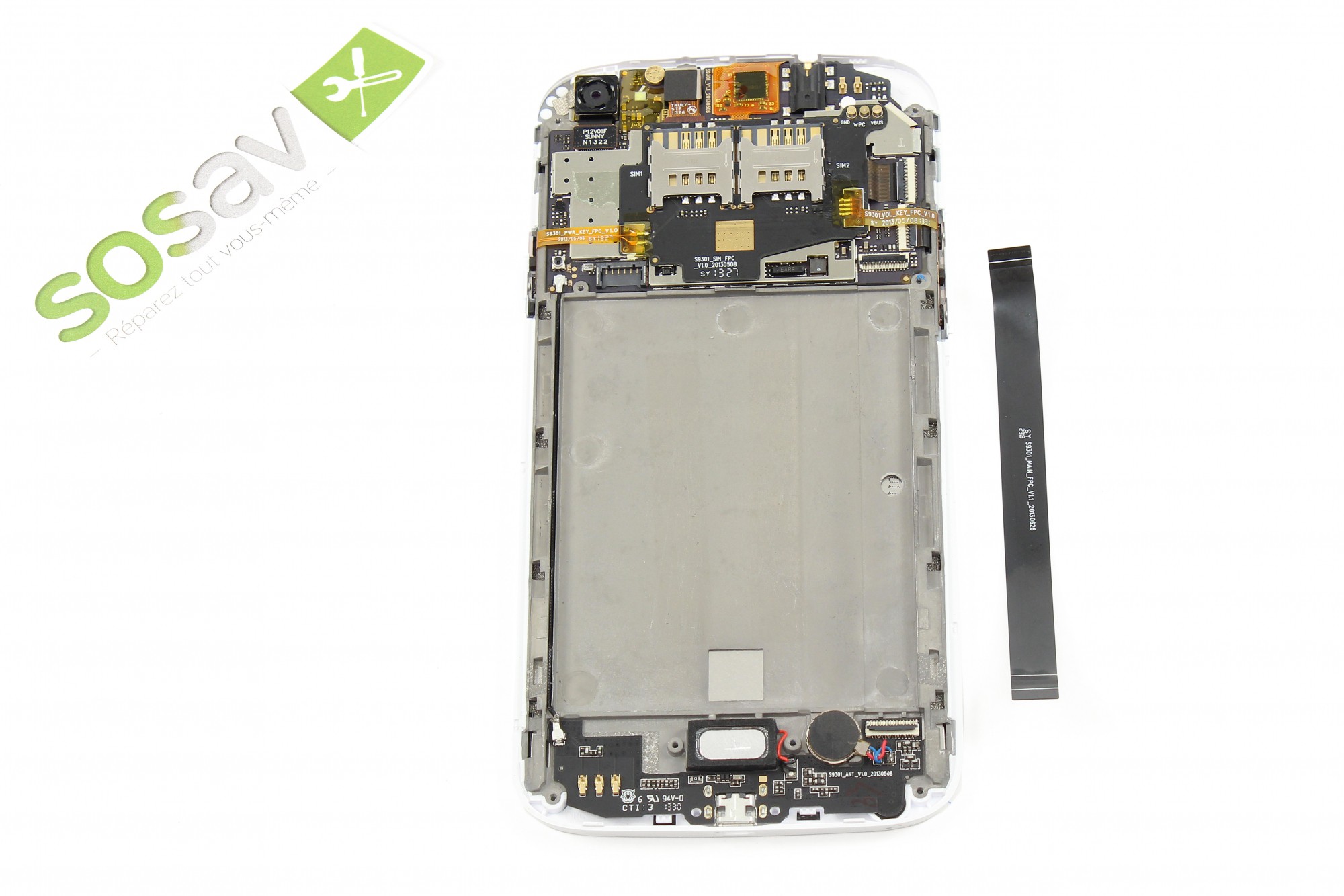 La nappe de liaison de l'ensemble du bas du Wiko Darkside est désormais démontée.