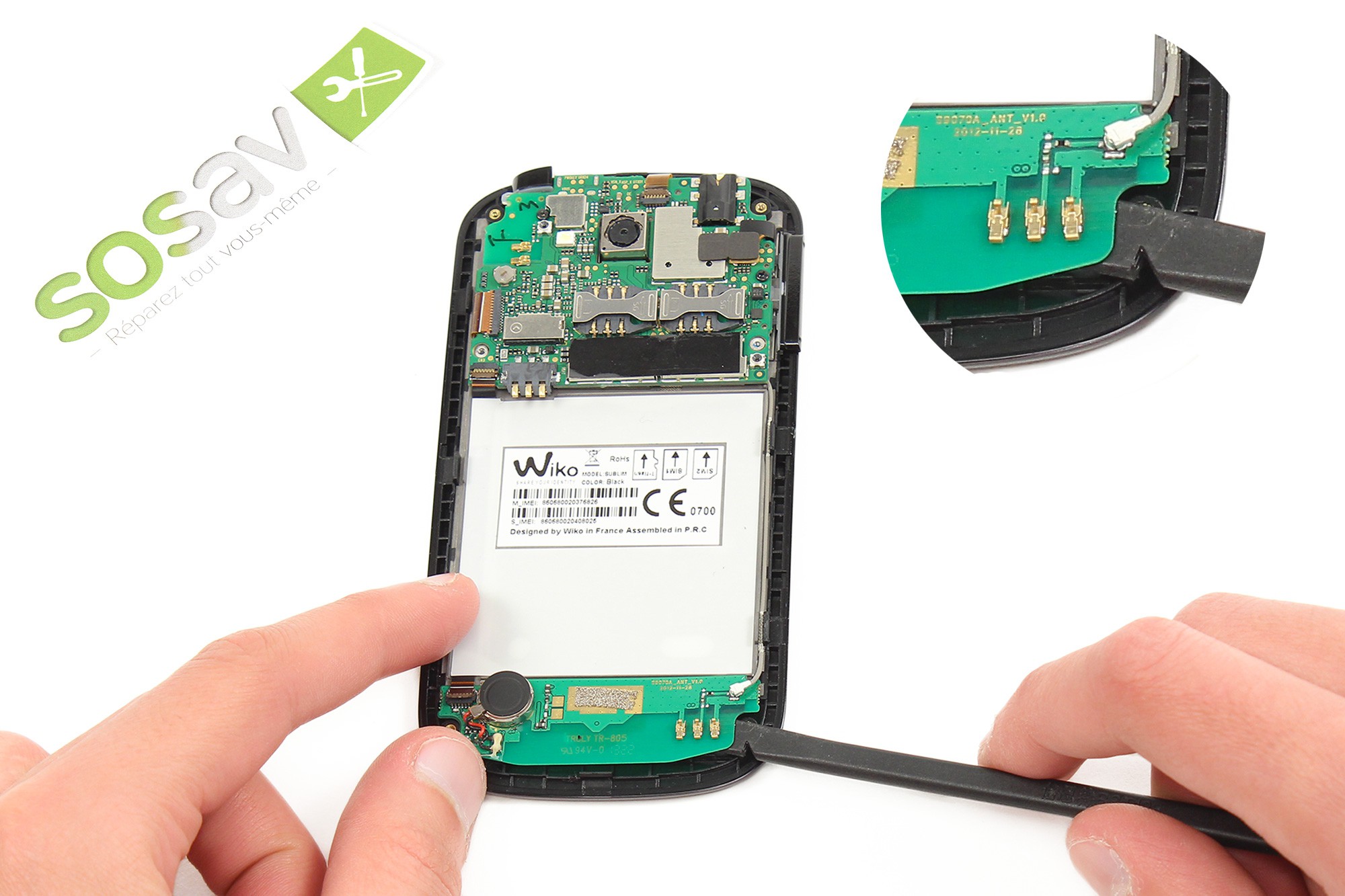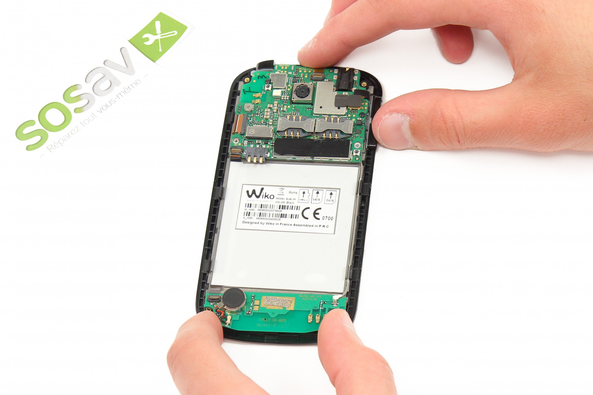 La batterie du Wiko Sublim est à présent démontée.