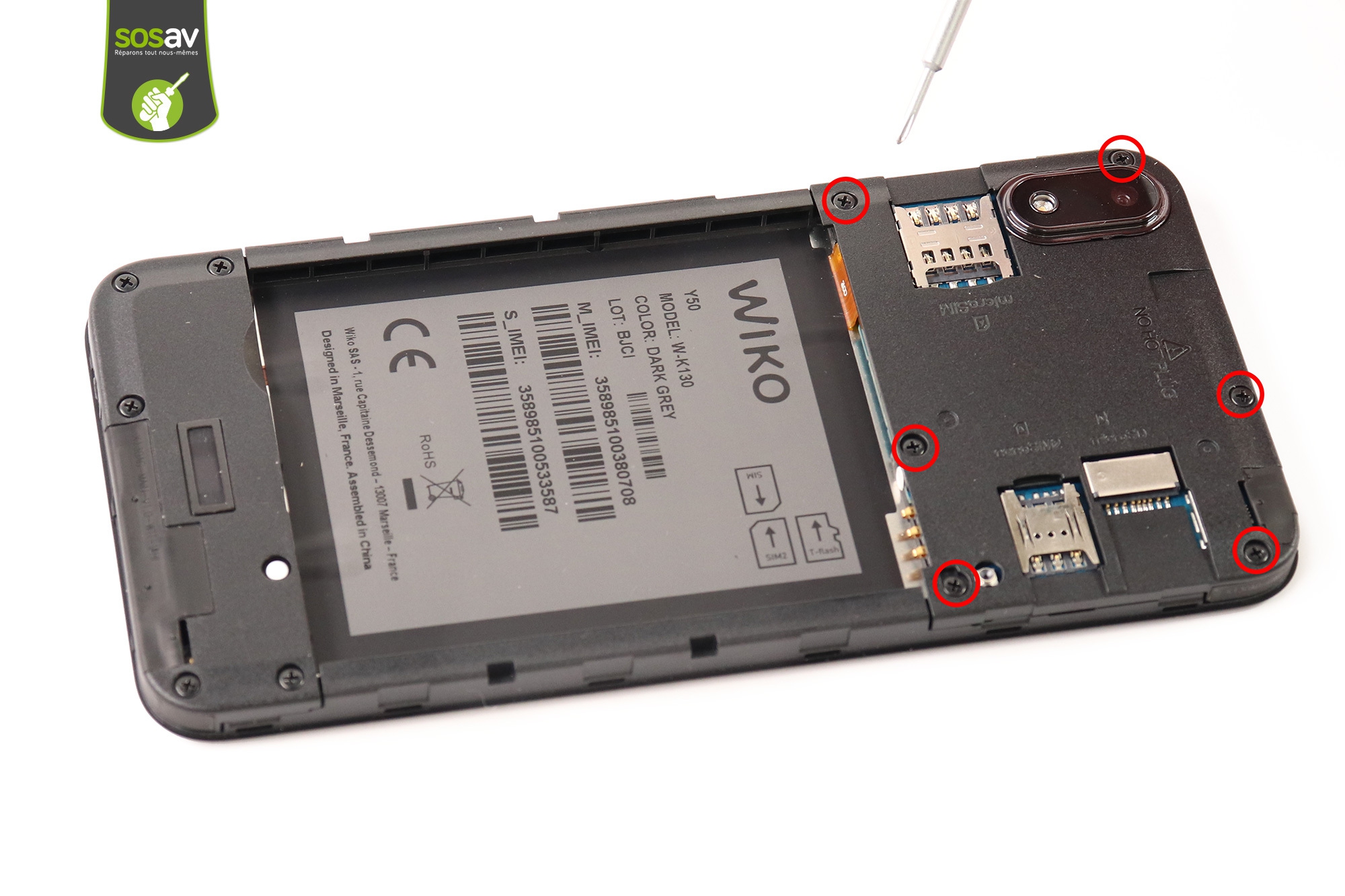 Les experts SOSav ont réalisé ce guide de réparation afin de partager avec vous tout leur savoir-faire en matière de réparation Wiko. Chaque étape est illustrée et commentée afin de vous détailler les manoeuvres à effectuer pour remplacer cet écran Wiko Y50 défaillant. Avec un peu de patience et les bons outils, vous retrouverez un affichage coloré ainsi qu'un tactile réactif.