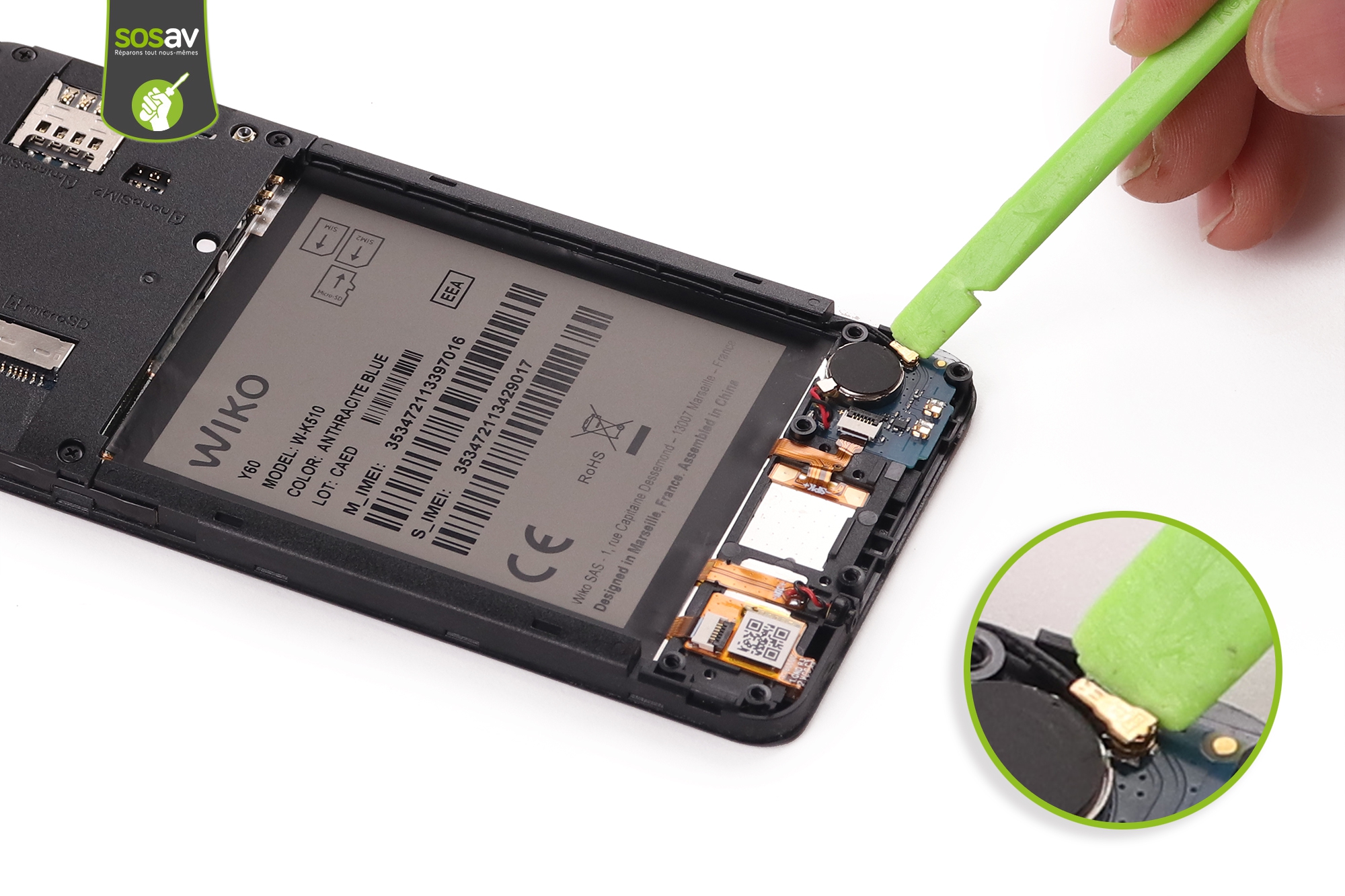 Comment remplacer vibreur pour Wiko Y60 - Guide images