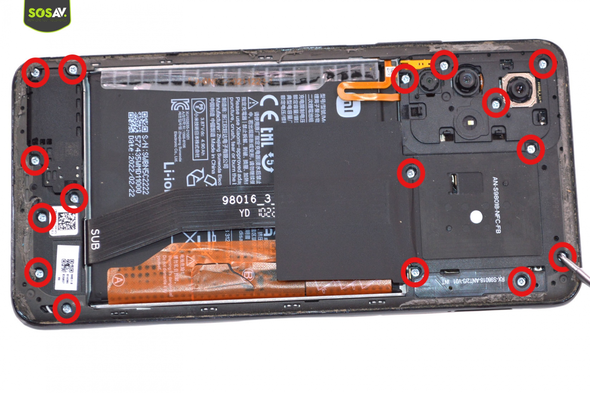 Vous ne pouvez plus partager des fichiers, payer avec votre téléphone ? Même vous qui aviez l’habitude de prendre vos tickets de transport sur smartphone, lorsque vous passez votre portable les portes ne s’ouvrent pas ? Vous avez remarqué que vous n’aviez pas de réseau… Cela signifie donc que l’antenne NFC Xiaomi Redmi Note 11S 5G est défectueuse. Avec une antenne NFC Xiaomi Redmi Note 11S 5G cassée, vous ne pourrez plus utiliser toutes ces fonctionnalités. A moins que… vous changiez l’antenne NFC Xiaomi Redmi Note 11S 5G ! Et justement, nos experts SOSav ont rédigé pour vous un guide de réparation pour réparer l’antenne NFC Xiaomi Redmi Note 11S 5G seul.e. Il ne vous reste plus qu’à suivre les différentes étapes indiquées. Suivez pas à pas ce guide de réparation, et vous réussirez à réparer l’antenne NFC Xiaomi Redmi Note 11S 5G.