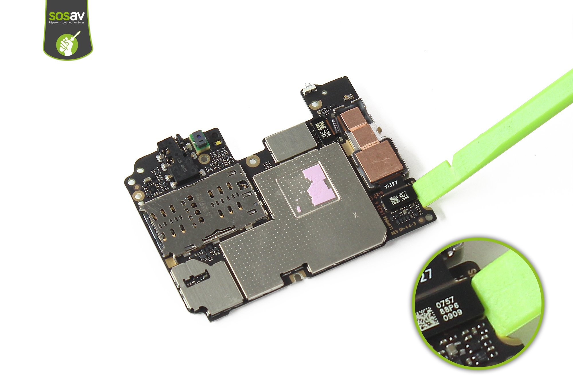 Les experts SOSav ont réalisé ce guide de réparation illustré et commenté afin de vous expliquer comment manoeuvrer. Vous n'avez qu'à suivre les étapes détaillées de notre tuto pour comprendre que réparer son smartphone soi-même n'est pas si difficile et vous reviendra jusqu'à trois fois moins cher que de passer par un professionnel.
