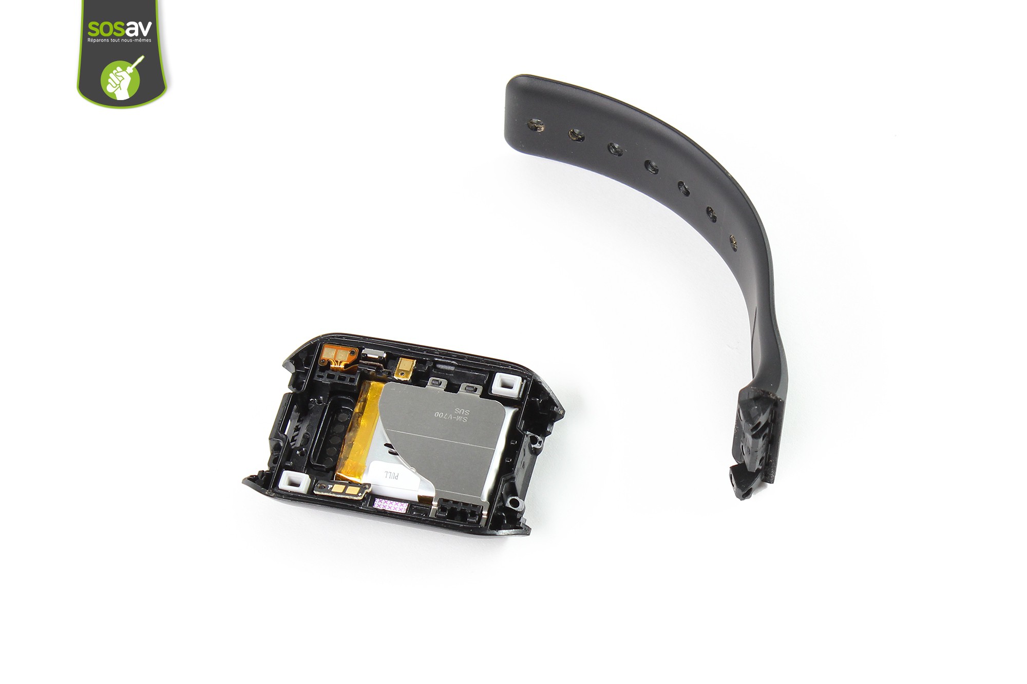 Sile bracelet de votre Galaxy Gear 1 est cassé ou abîmé, la seule solution s'offrant à vous est de le remplacer. Hélas, ce dernier ne se remplace pas aussi facilement que sur une montre traditionnelle, et ce remplacement peut s'avérer coûteux en boutique ou via le SAV de la marque ! Fort heureusement, nous avons pour vous conçu ce guide de réparation détaillé illustré afin de vous aider à changer le bracelet de la Galaxy Gear. Suivez ce guide et retrouvez une montre connectée comme neuve grace à SOSAV !