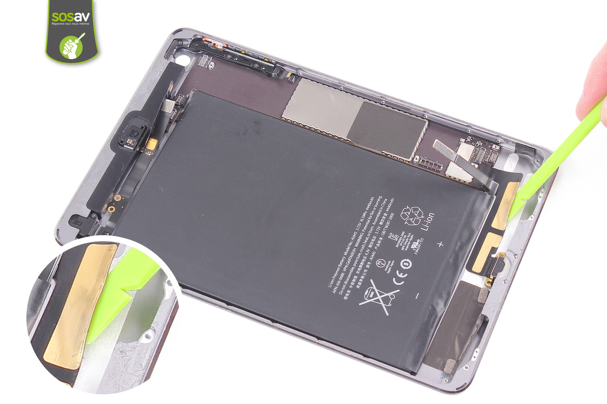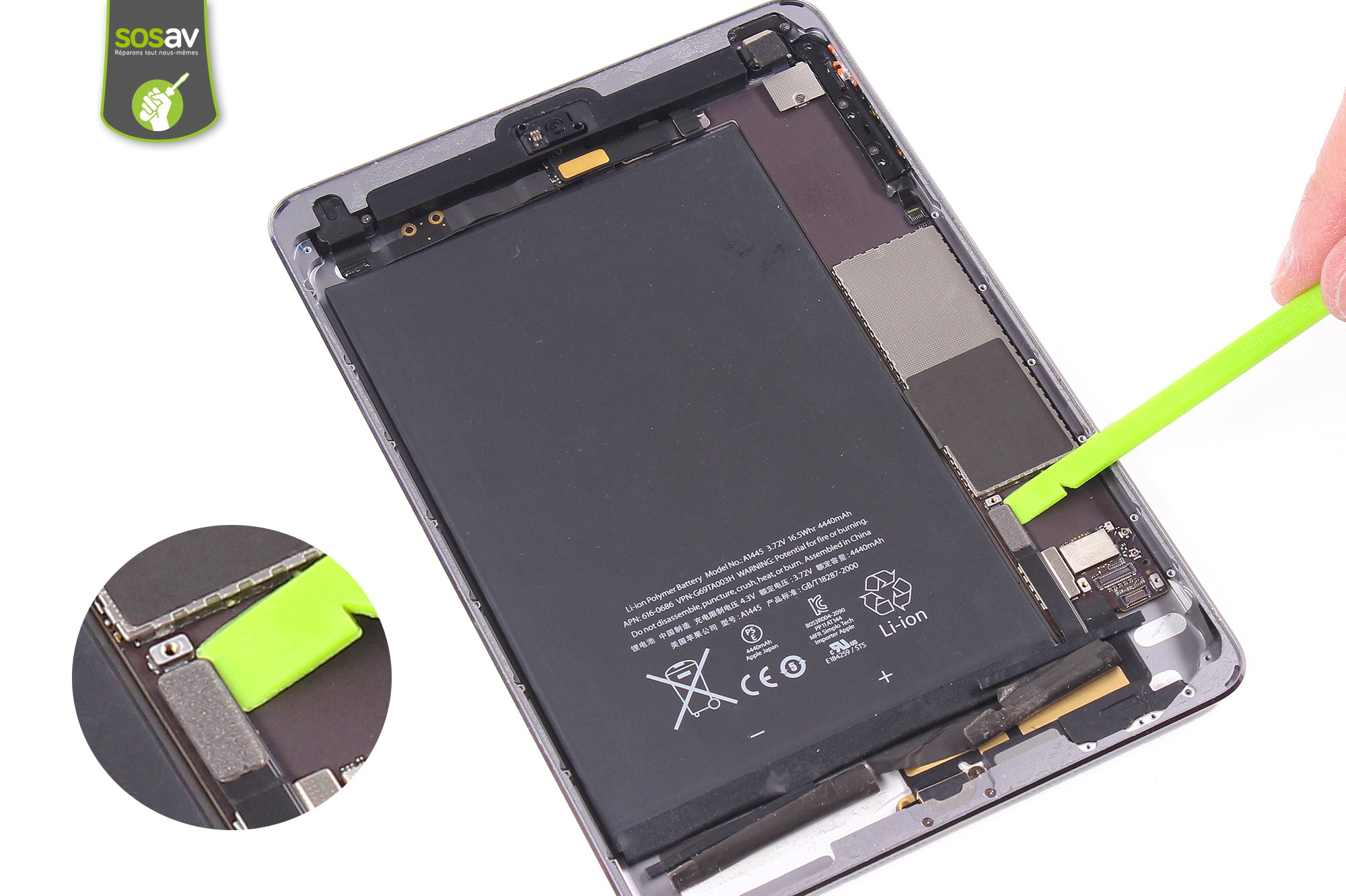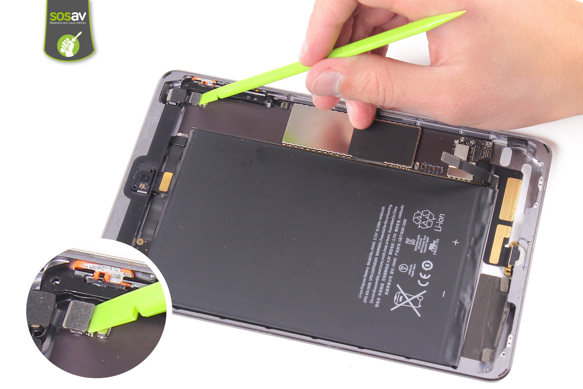 Utilisez la spatule en nylon pour déconnecter la batterie.
