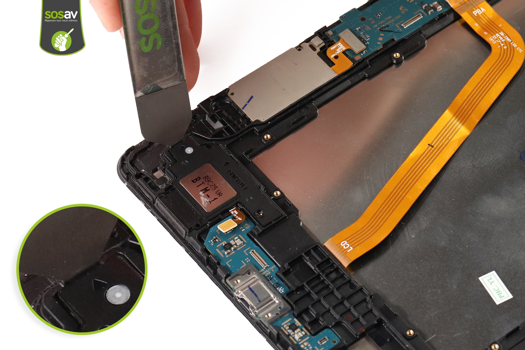Les experts de SOSav ont réalisé pour vous un guide de réparation écran complet (tactile, LCD, châssis) Galaxy Tab A 10,5 (2018) gratuit, illustré et commenté à travers des étapes détaillées pour vous expliquer comment changer votre écran Galaxy Tab A 10,5 (2018) vous-même. Vous verrez ainsi que réparer votre tablette est tout à fait à votre portée, qu'il suffit de suivre les conseils de nos techniciens SOSav pour offrir une seconde jeunesse à votre Galaxy Tab A 10,5 (2018) !