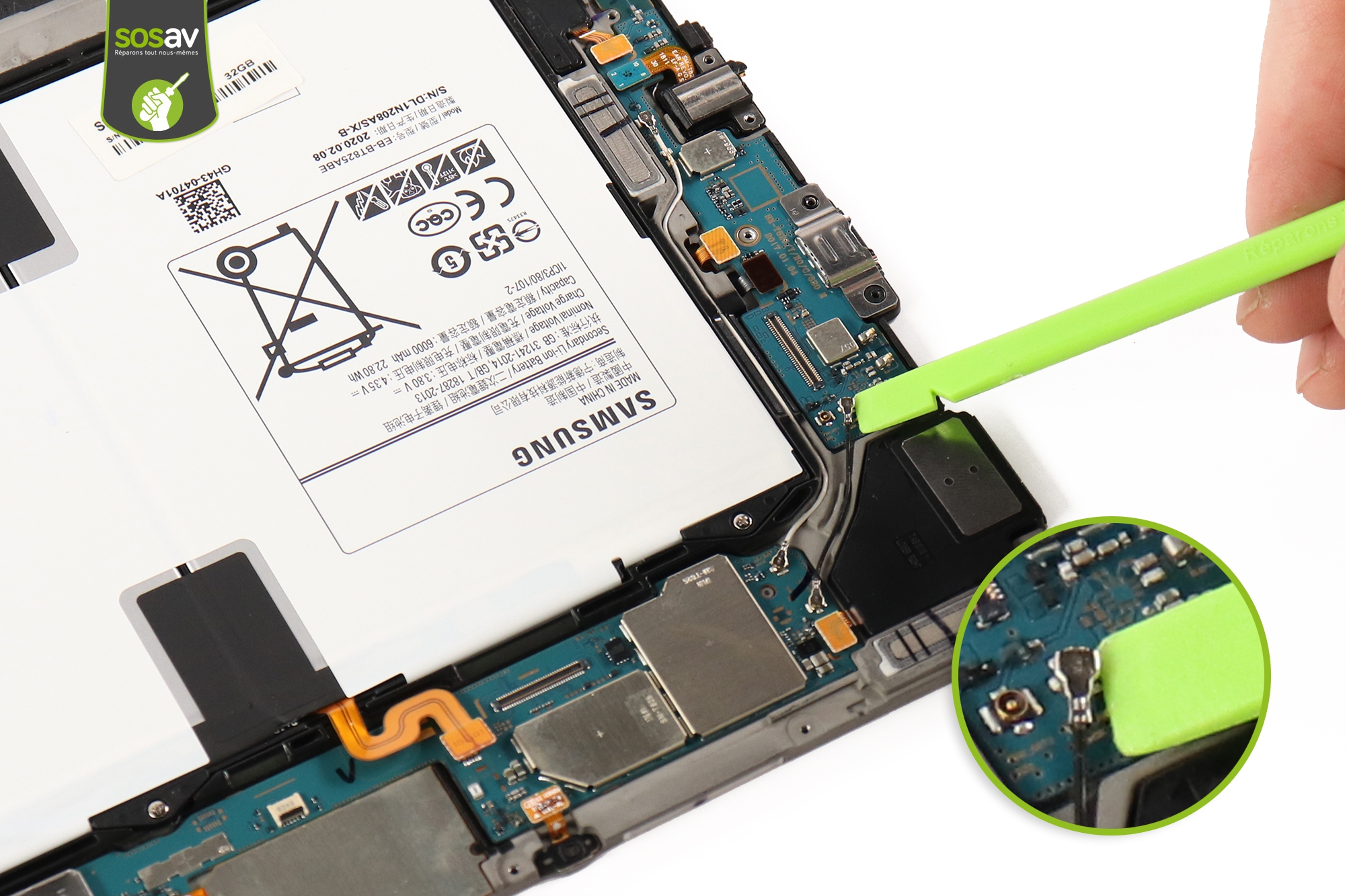 Avant toute chose, déconnectez la nappe de la batterie.Mesure de sécurité pour éviter les éventuels courts-circuits lors de la suite de la réparation Galaxy Tab S3 9.7".