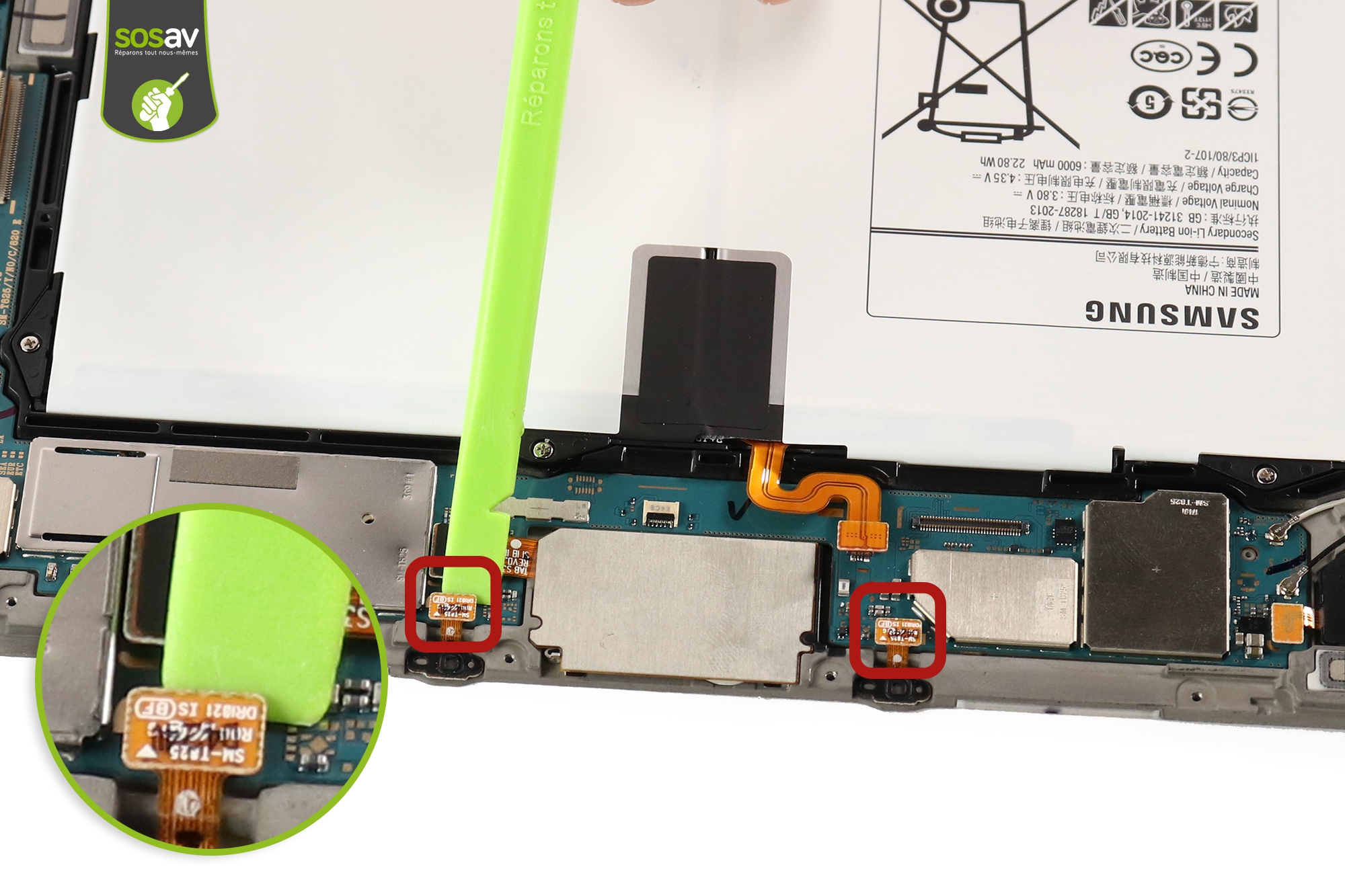 Passez en haut de la tablette !Utilisez la pince pour décoller l'adhésif qui recouvre le connecteur de la caméra arrière.Déverrouillez ensuite le connecteur à l'aide de la spatule en nylon.